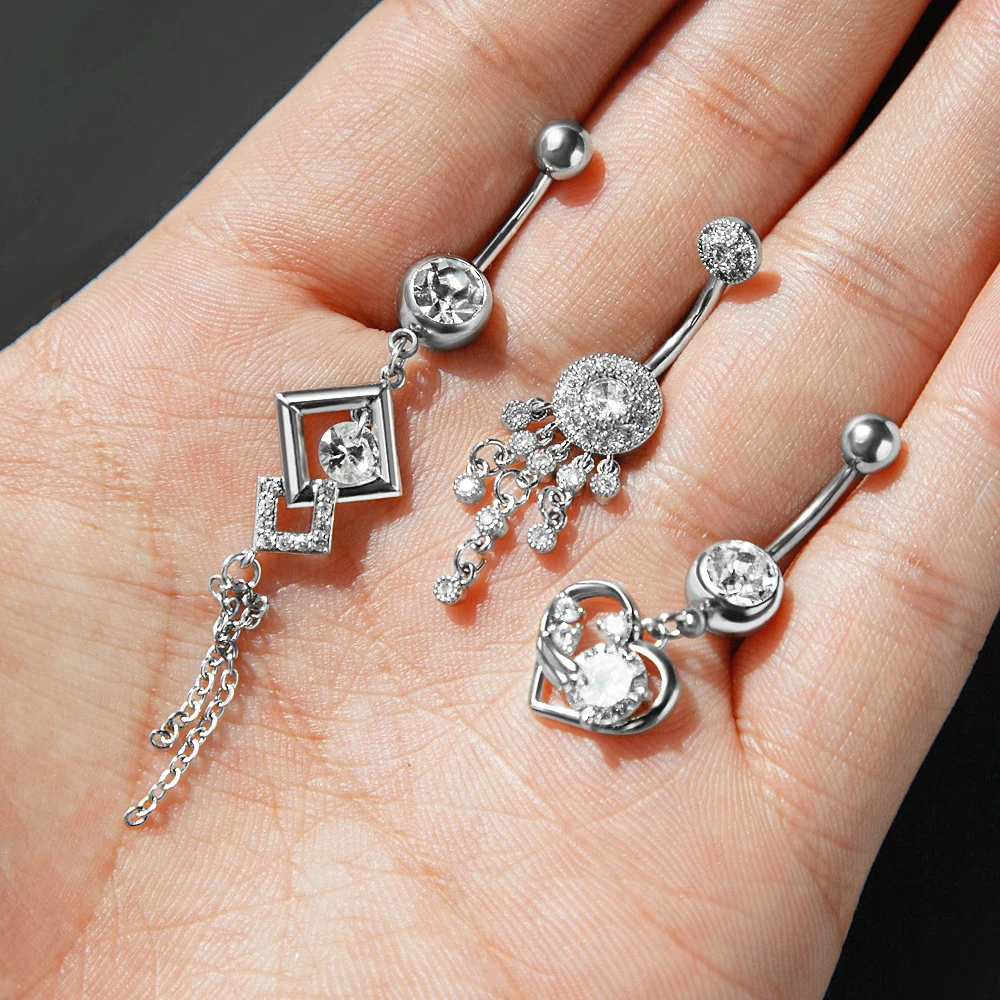 Кольцо-пуговица для пирсинга пупка из хирургической нержавеющей стали с цирконом, висячее украшение для живота в форме бабочки, сердца