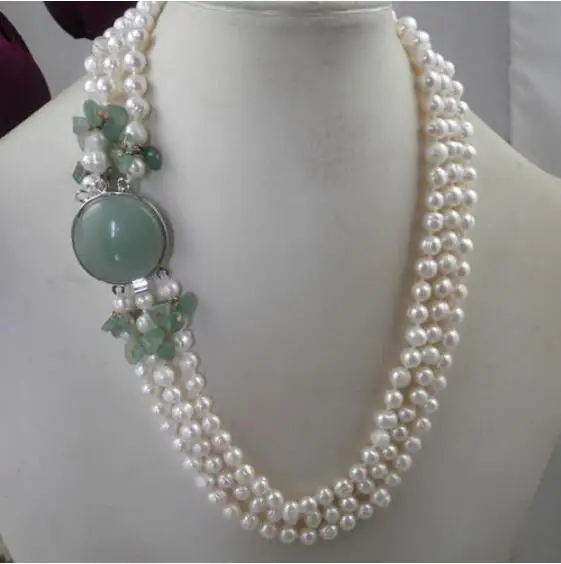 Колье из 100% натурального пресноводного белого жемчуга, 3 ряда, застежки для бус