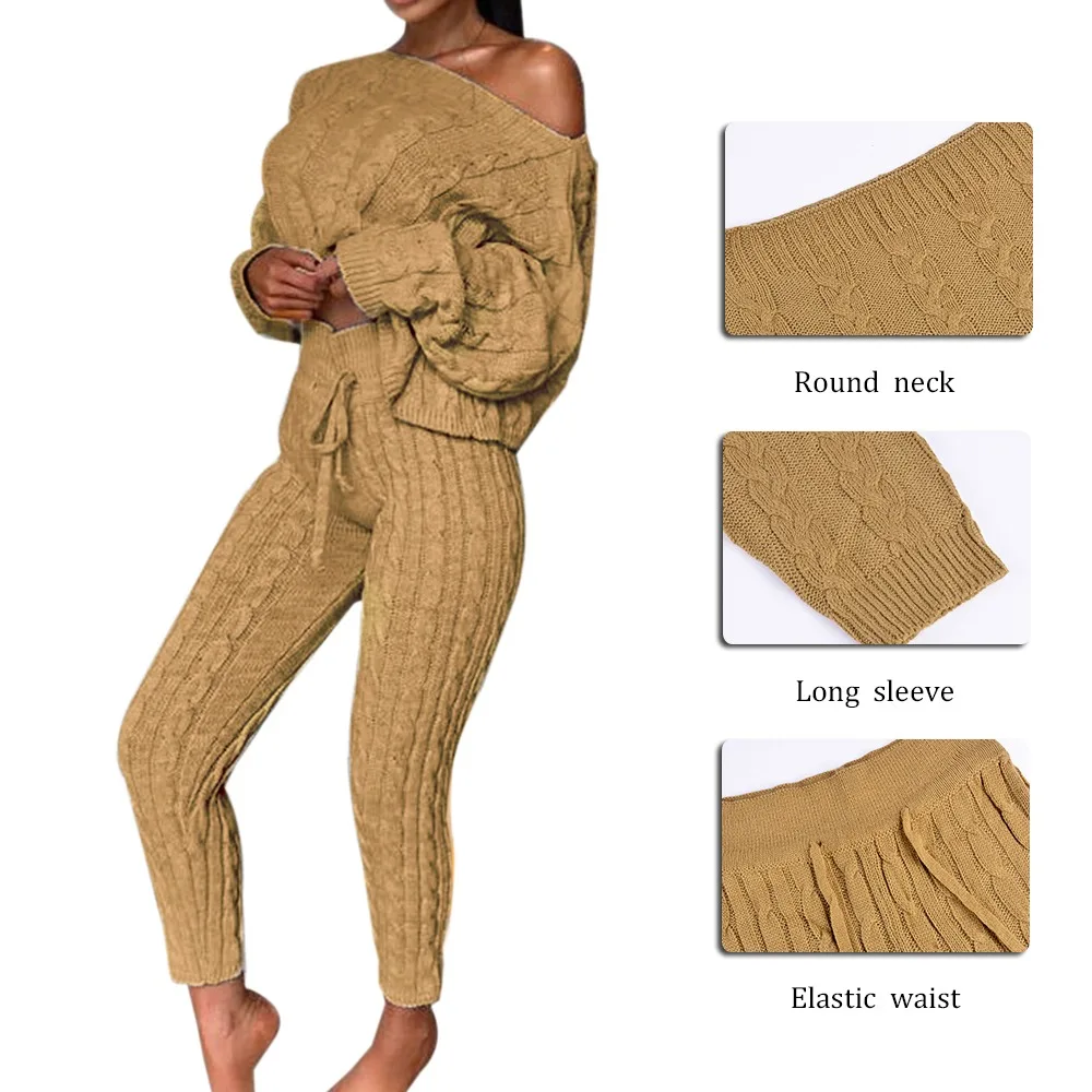 Женский однотонный вязаный теплый костюм для отдыха с открытыми плечами, осенний свитер, женский свитер, зимняя одежда, 2021
