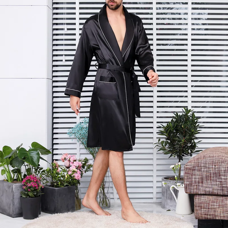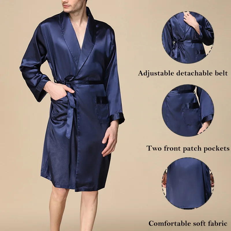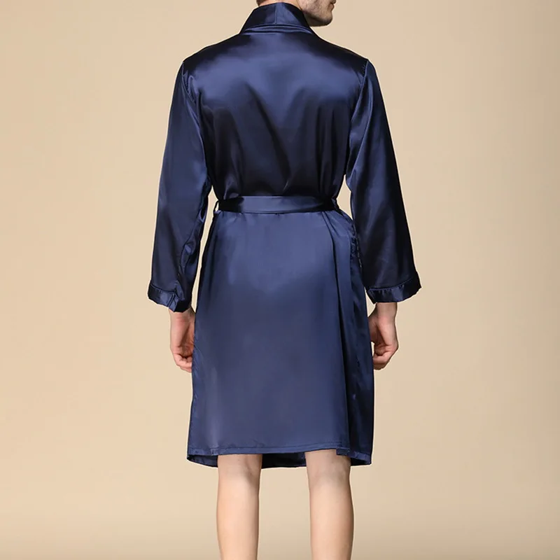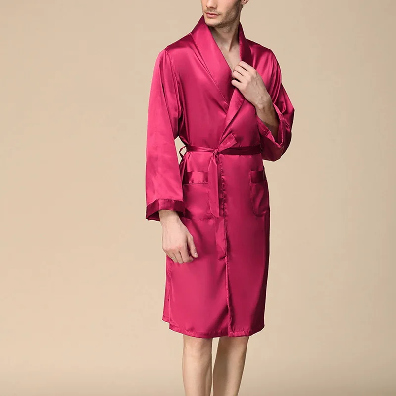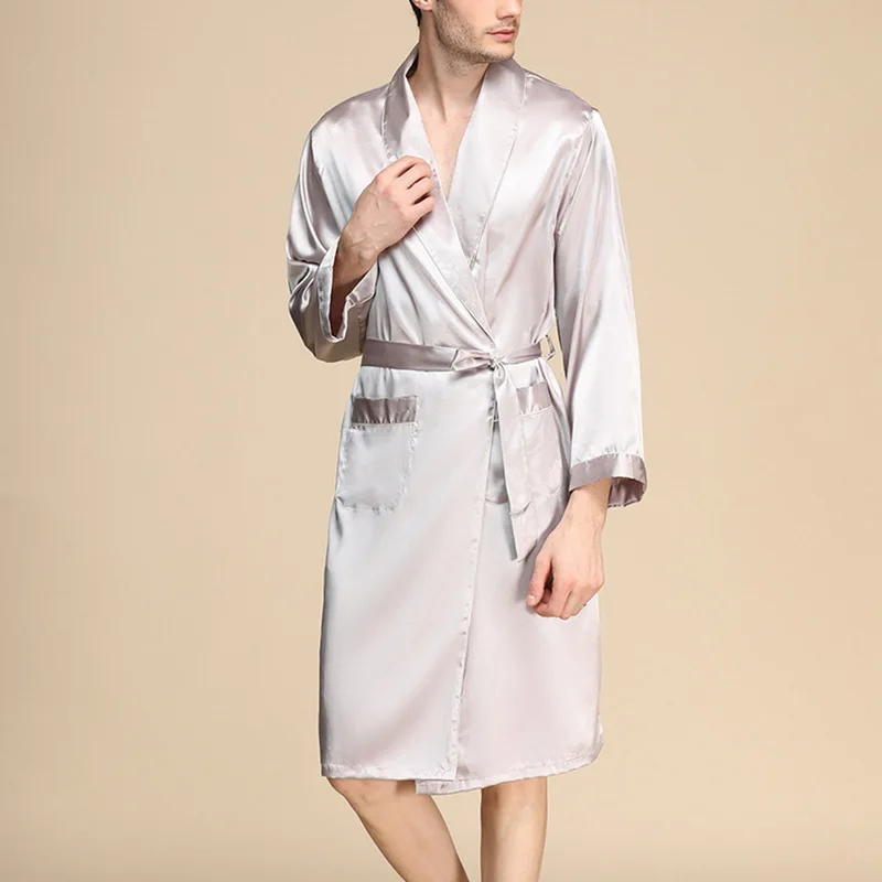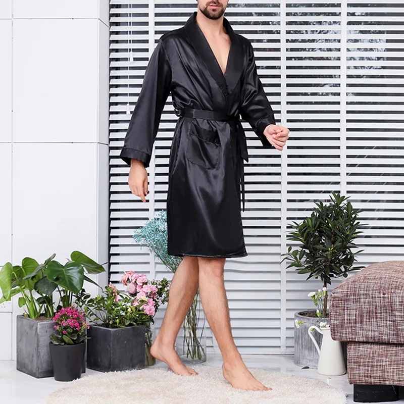 Ночная рубашка из искусственного шелка Мужская шелковая, Пижама для отдыха, удобный шелковый банный халат, благородный халат, ночная сорочка, Прямая поставка