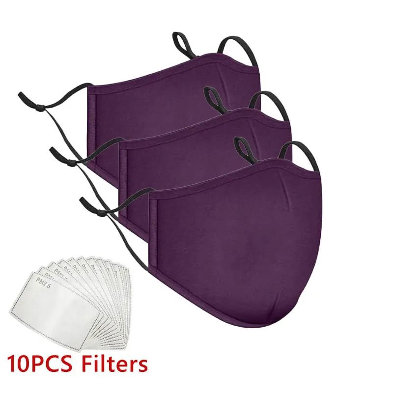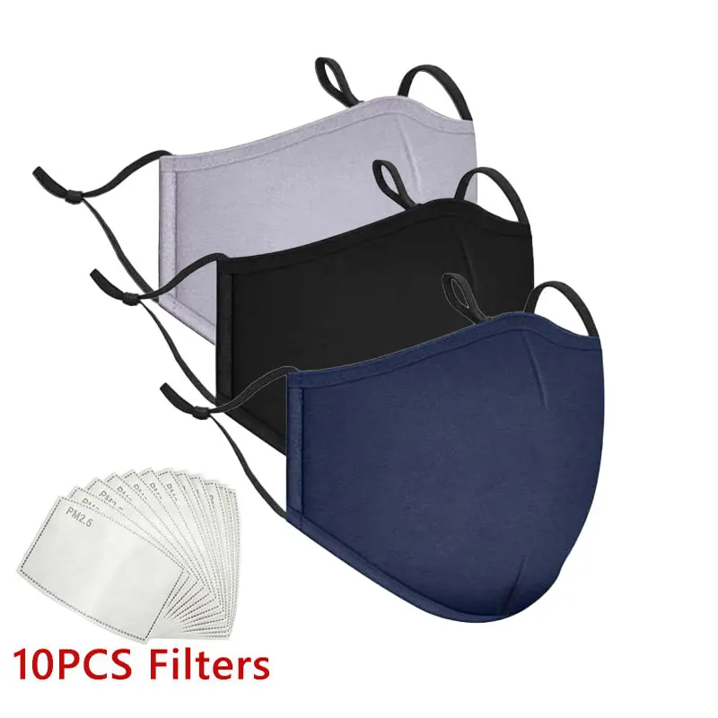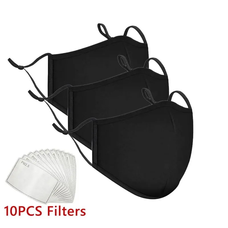 Маска хлопковая черная против пыли PM2.5 с фильтром из активированного угля, 3 шт.