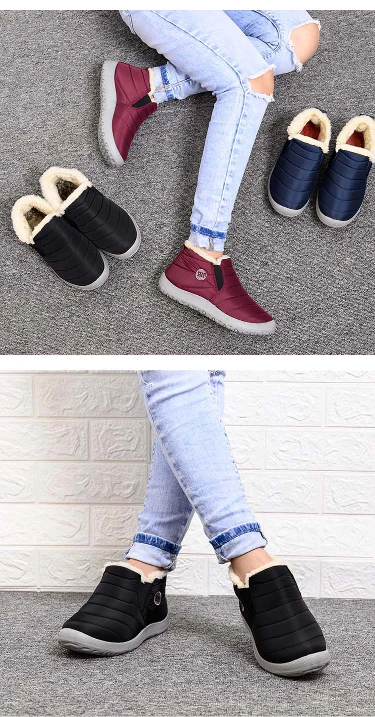Женские кроссовки без шнуровки, плюшевые водонепроницаемые, теплая ...
