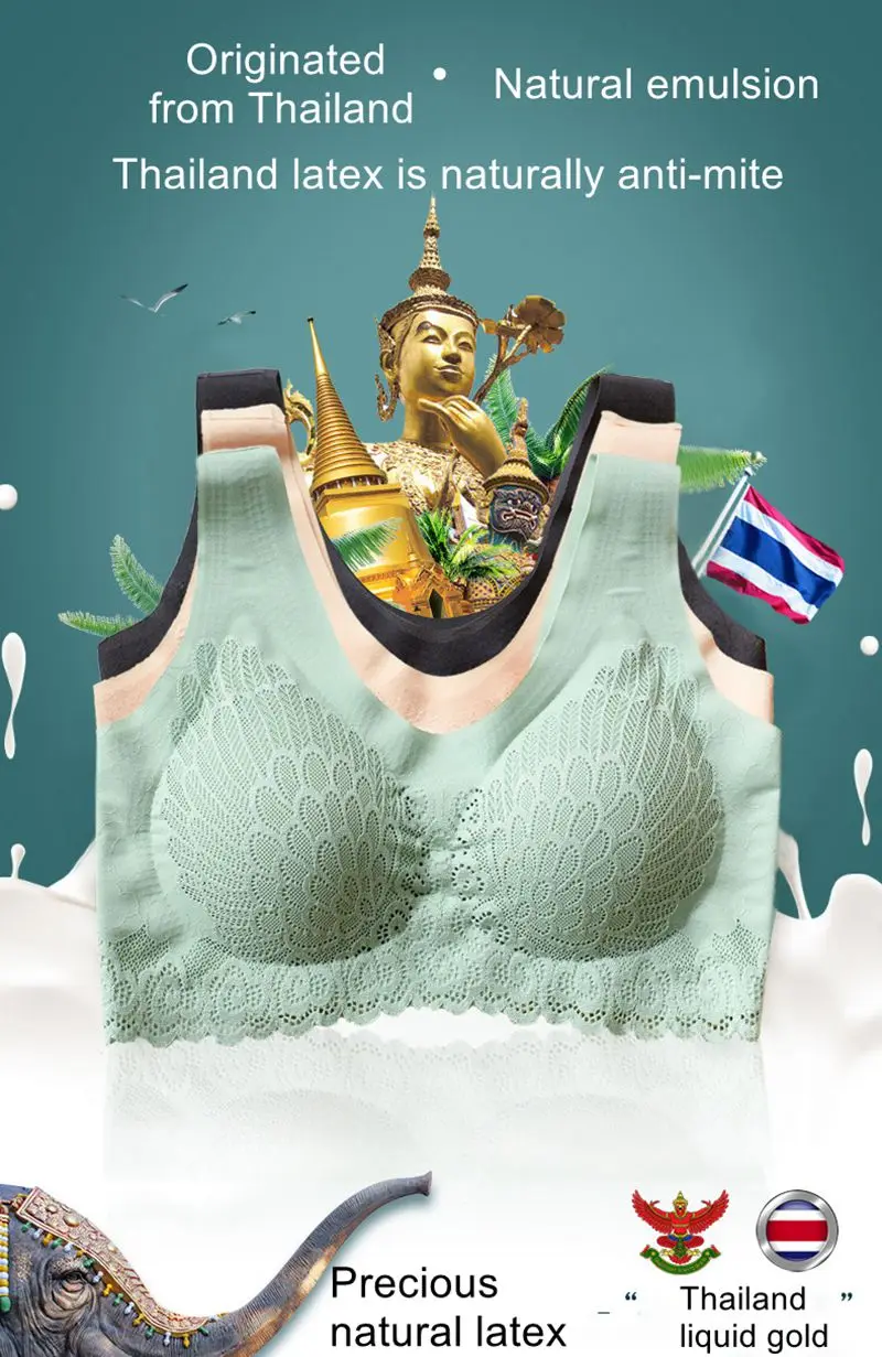 Тайское латексное нижнее белье, женский бюстгальтер с маленькой грудью, бесшовный стальной бюстгальтер-кольцо, бесшовный спортивный жилет с кружевной спинкой