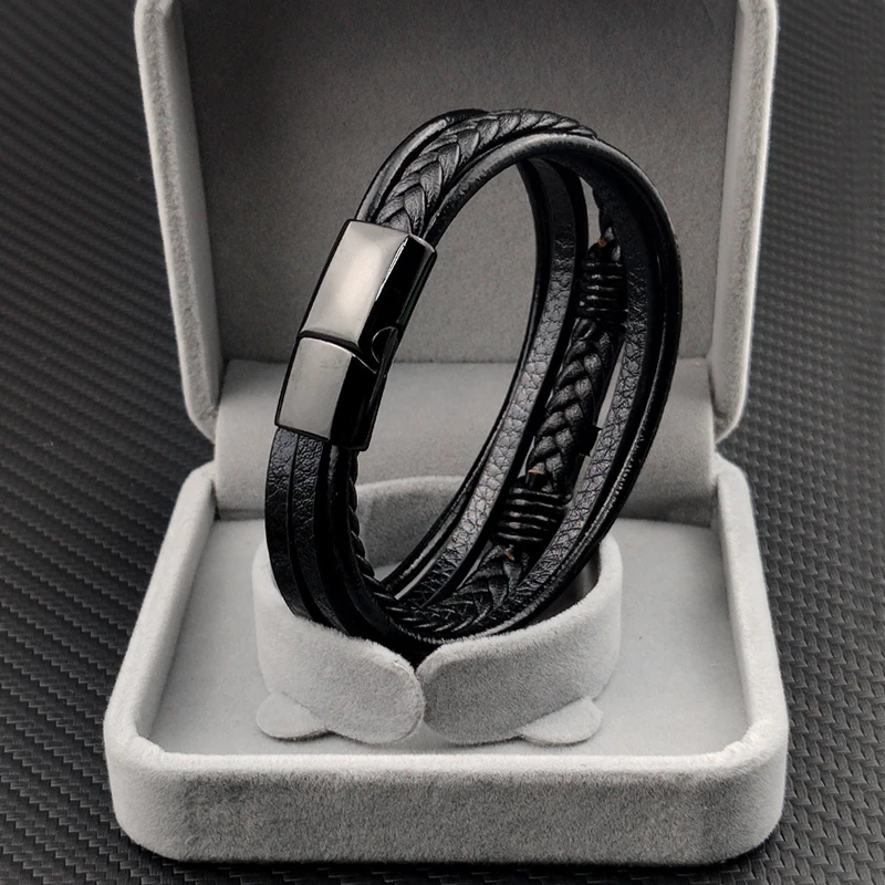 Персонализированный мужской браслет в стиле бохо с именем, плетеный кожаный браслет с черным крестом из нержавеющей стали, ювелирное изделие с именем под заказ