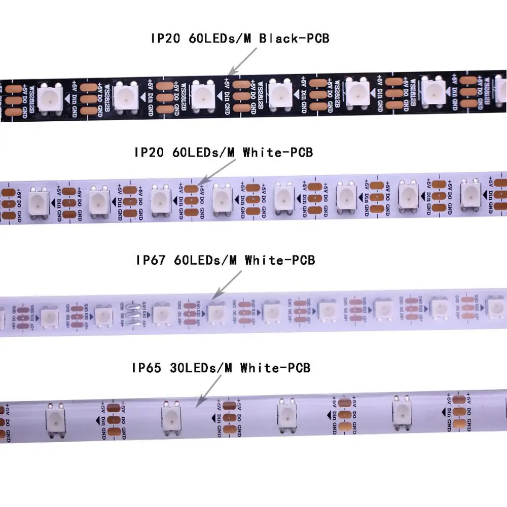 1 м5 м WS2812B умная светодиодная Пиксельная лента, чернаябелая ПП,...
