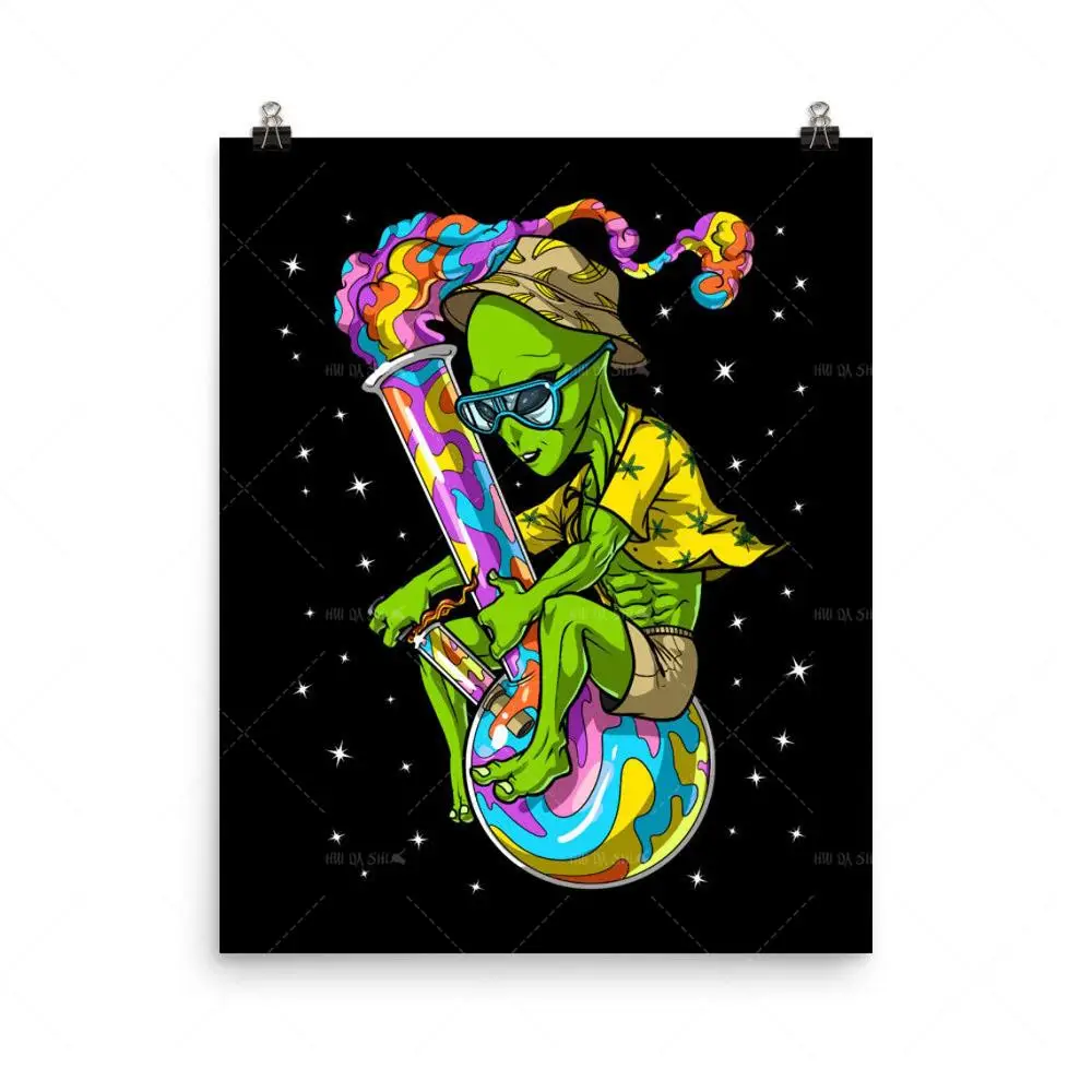 SubjectsCartoon Space Alien Weed Bong Nordic Poster