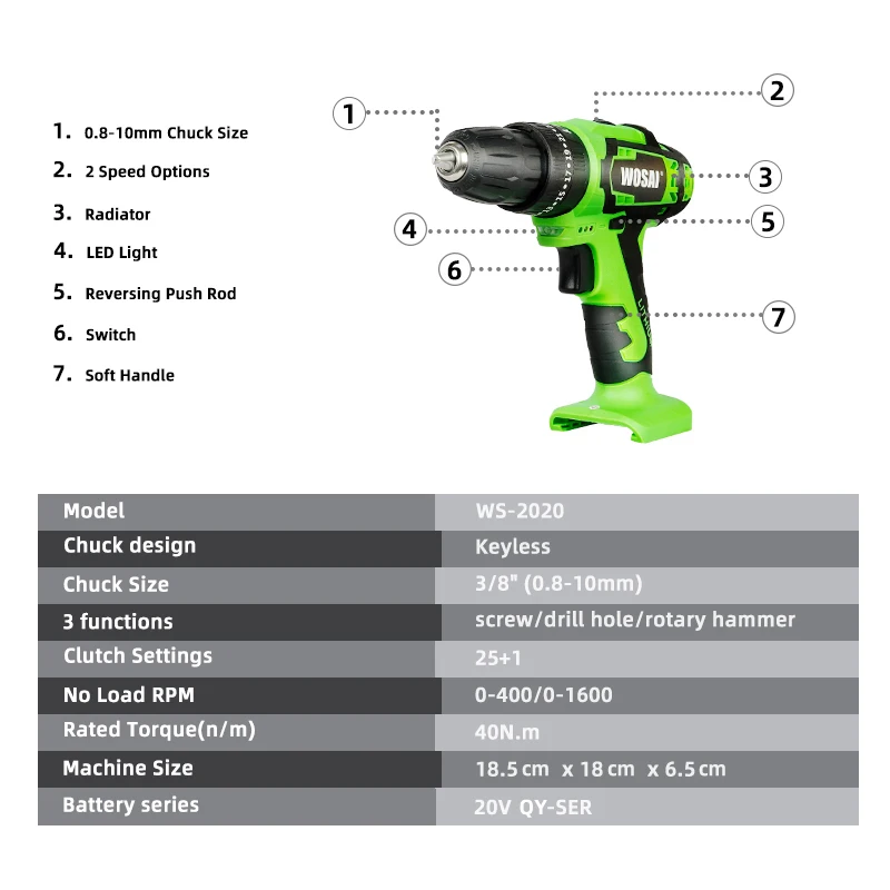 WOSAI MT-Series 20 в бесщеточная электрическая дрель, Беспроводная ...
