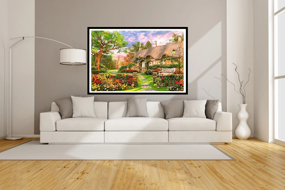 Алмазная вышивка, живопись, сельский дом, пейзаж, искусство, вышивка крестиком, сделай сам, украшение для дома, подарок, полностью Квадратный бриллиант, 5D