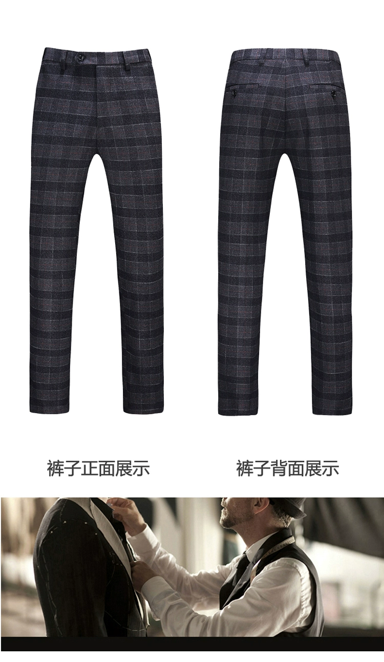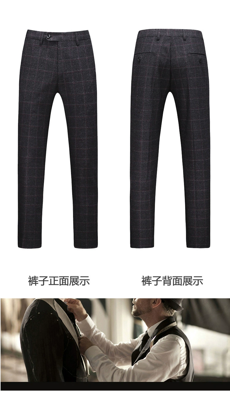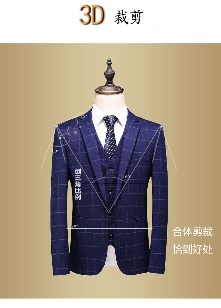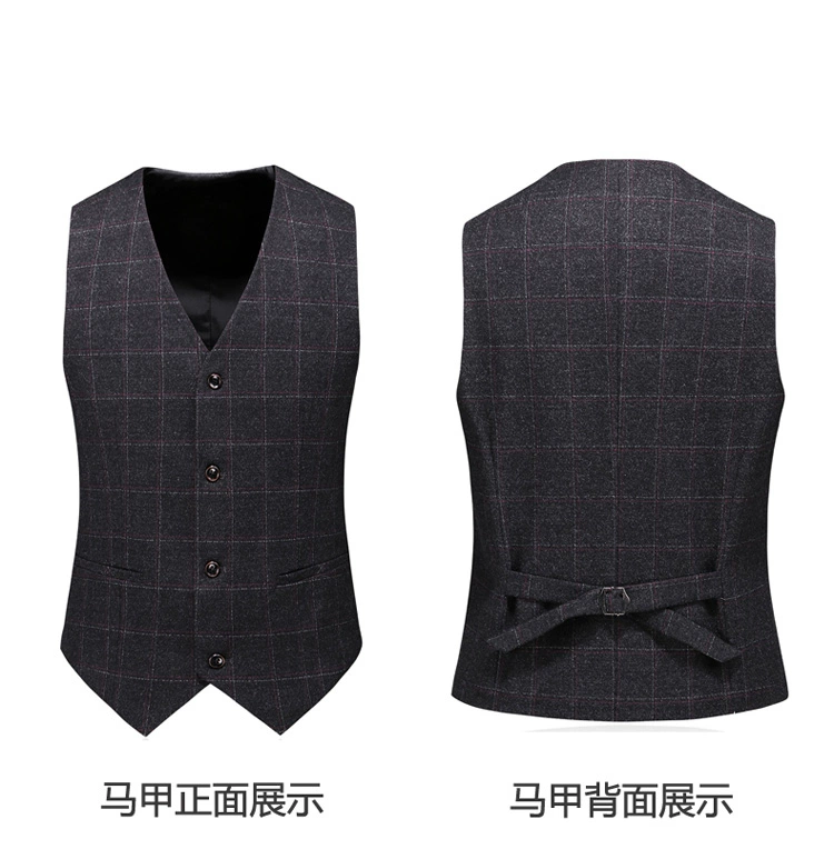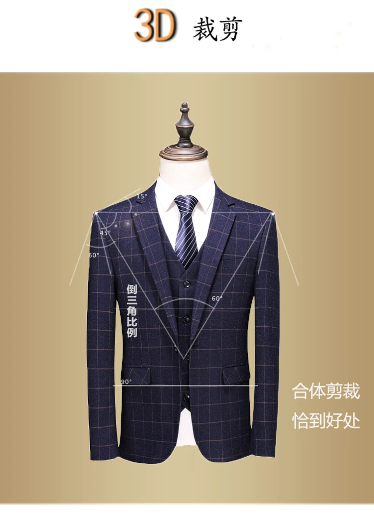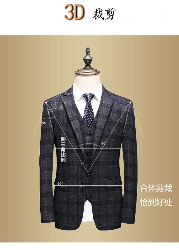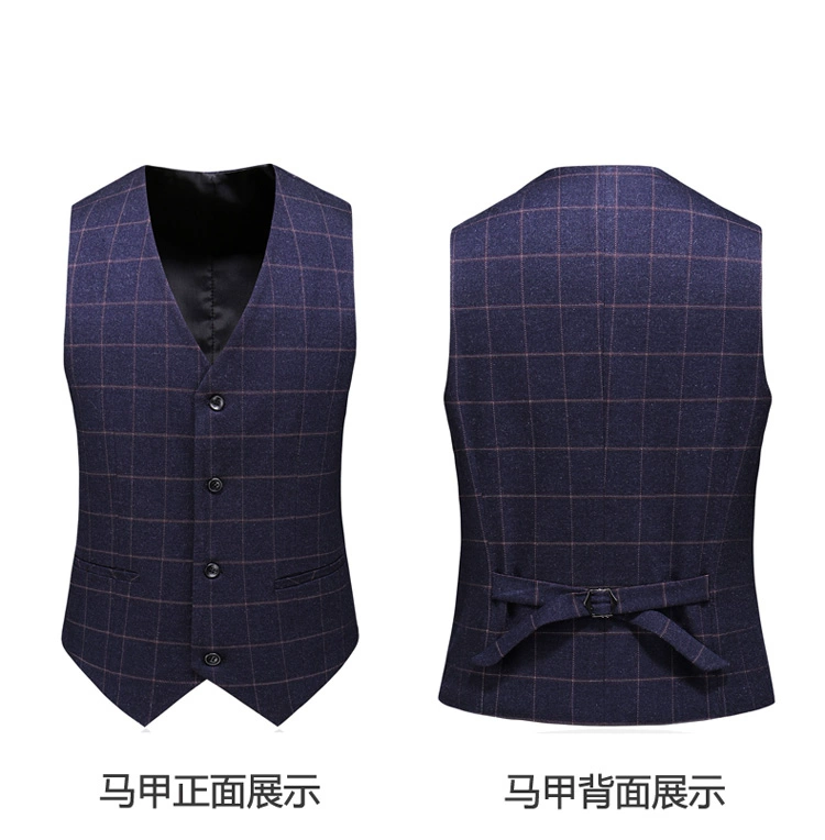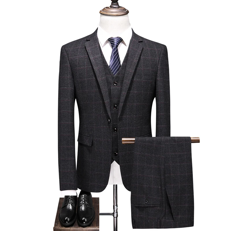 (Куртка + жилет + брюки) мужской деловой повседневный костюм в клет...