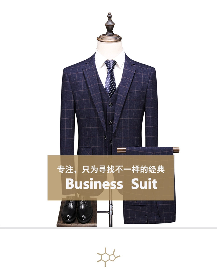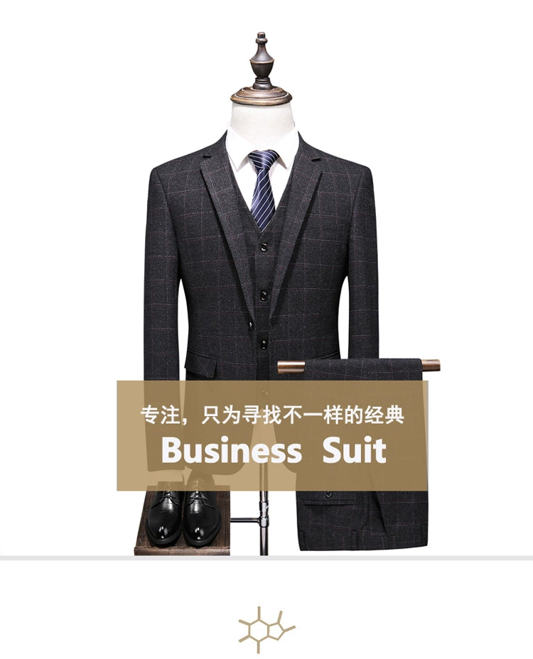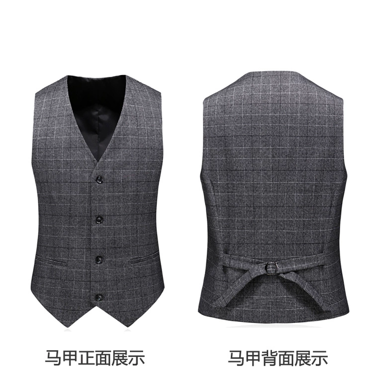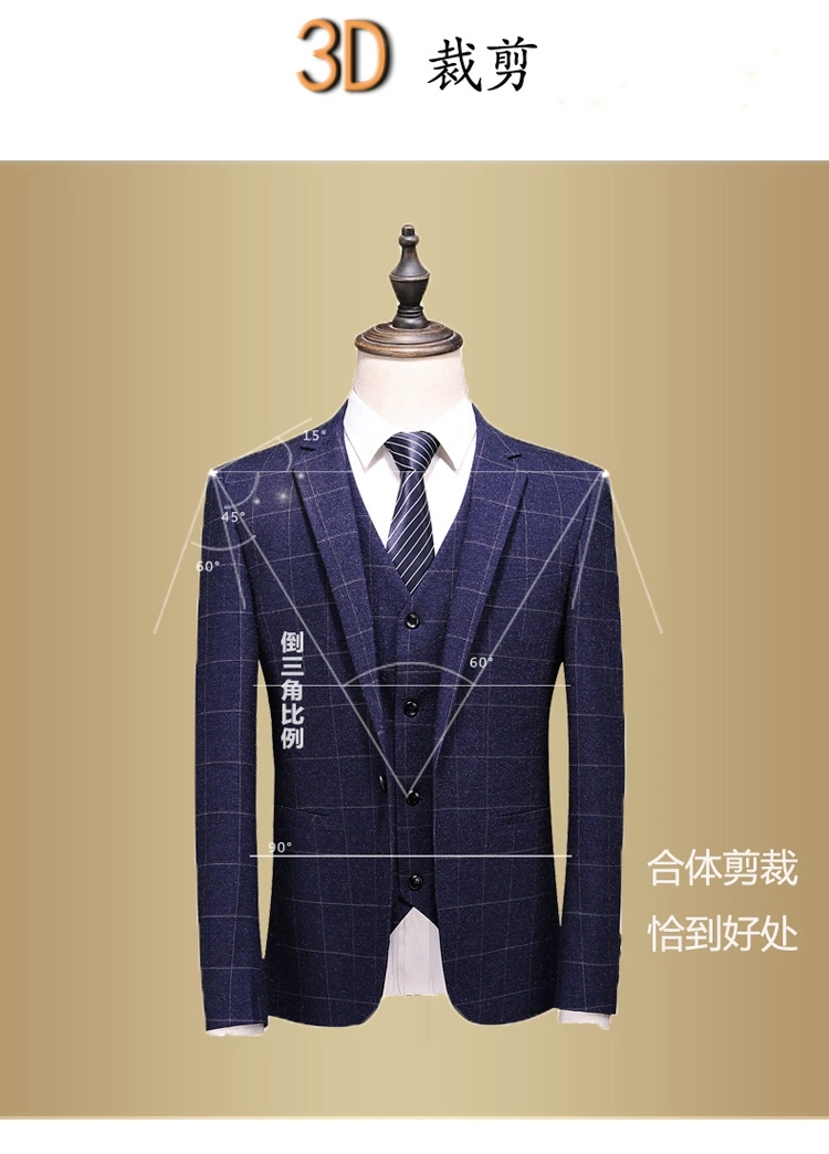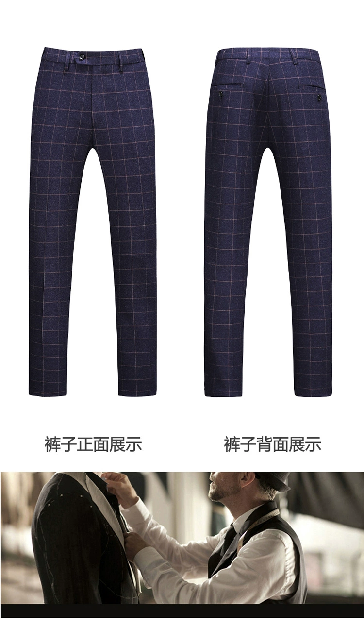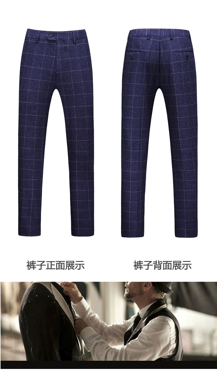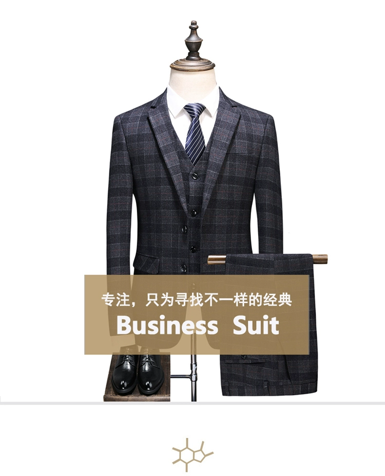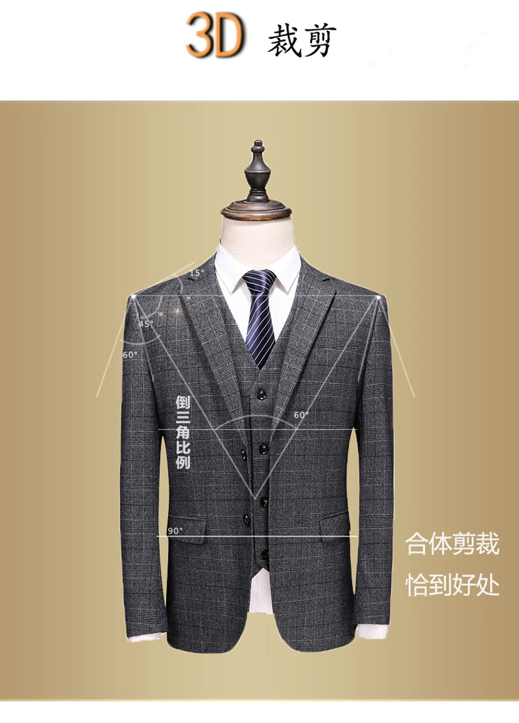 (Куртка + жилет + брюки) мужской деловой повседневный костюм в клет...