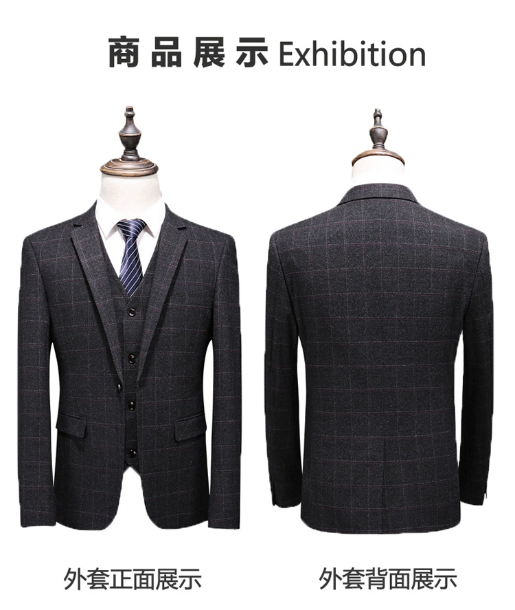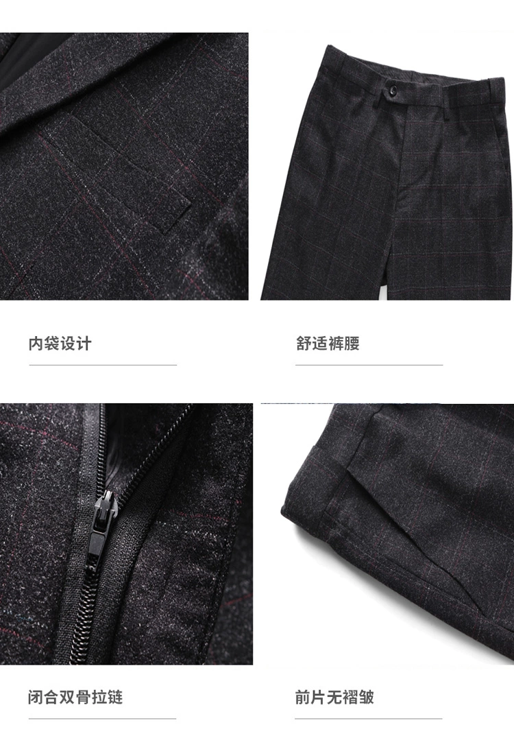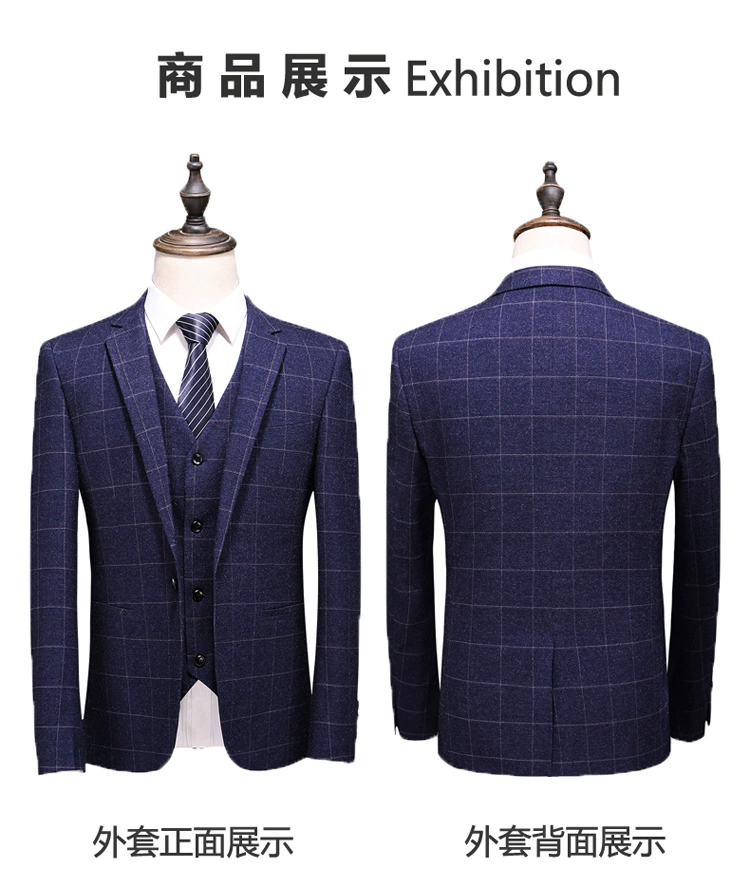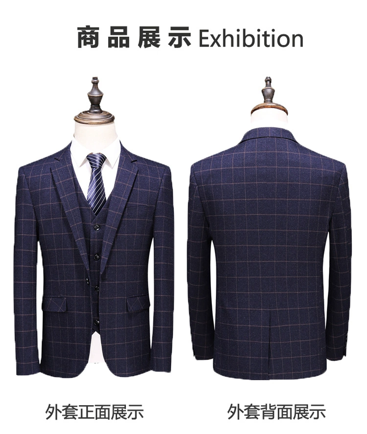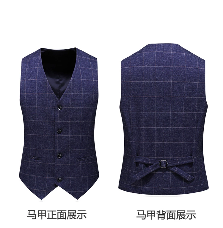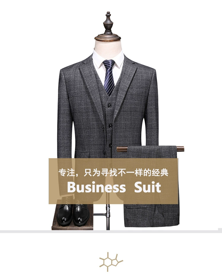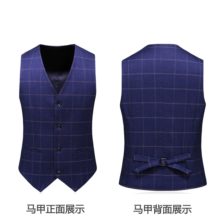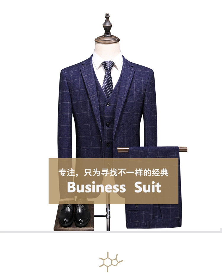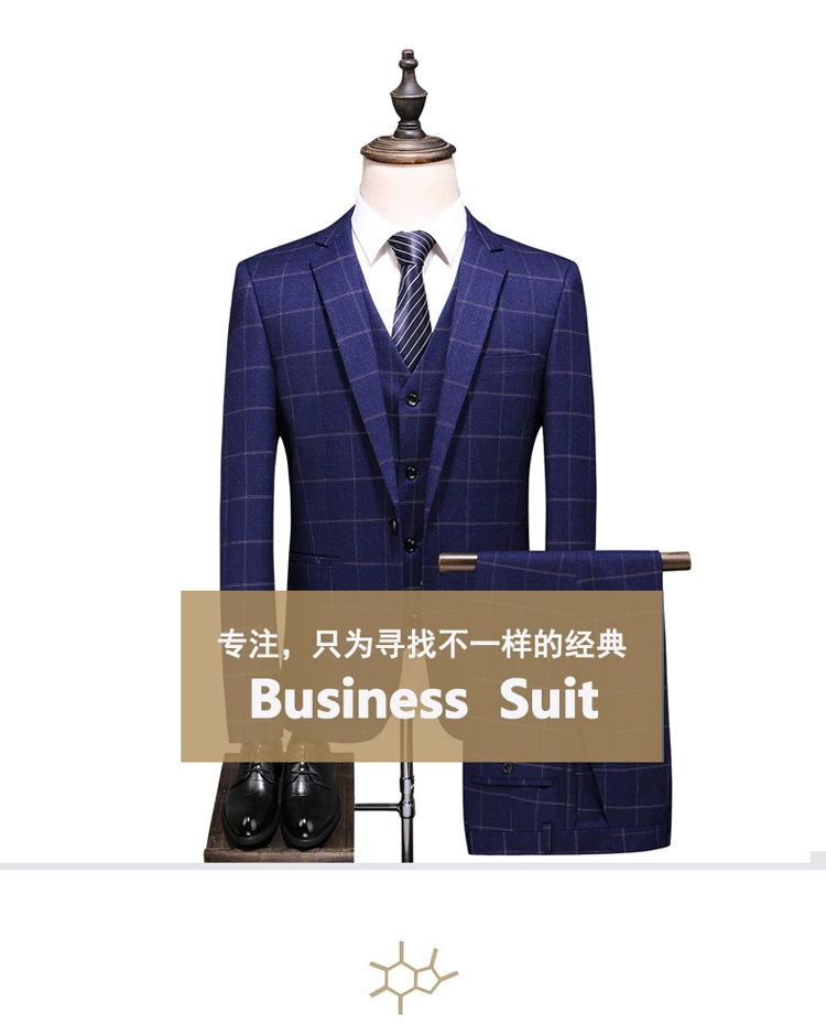 (Куртка + жилет + брюки) мужской деловой повседневный костюм в клет...