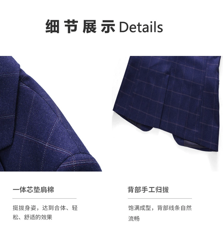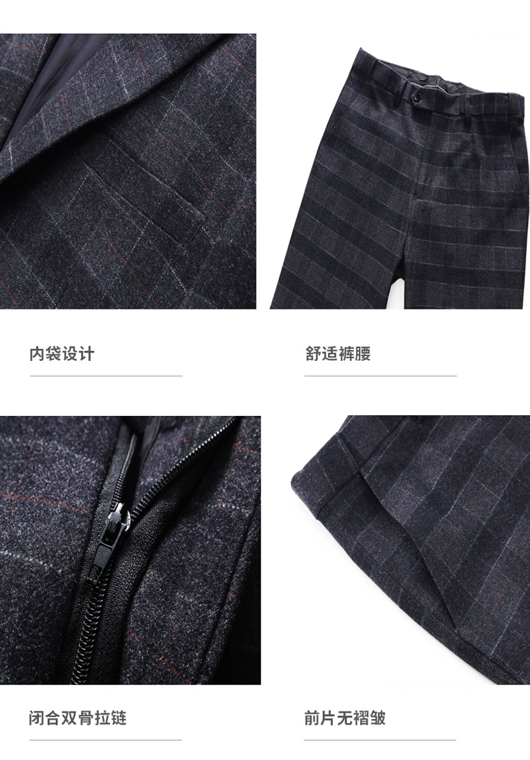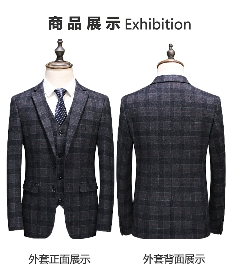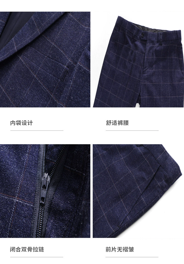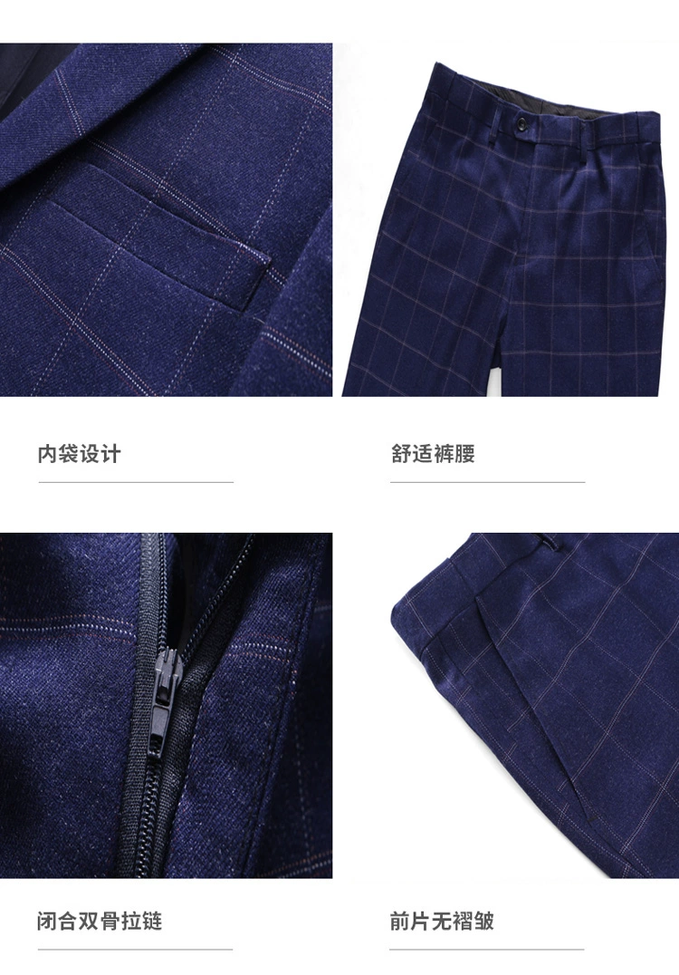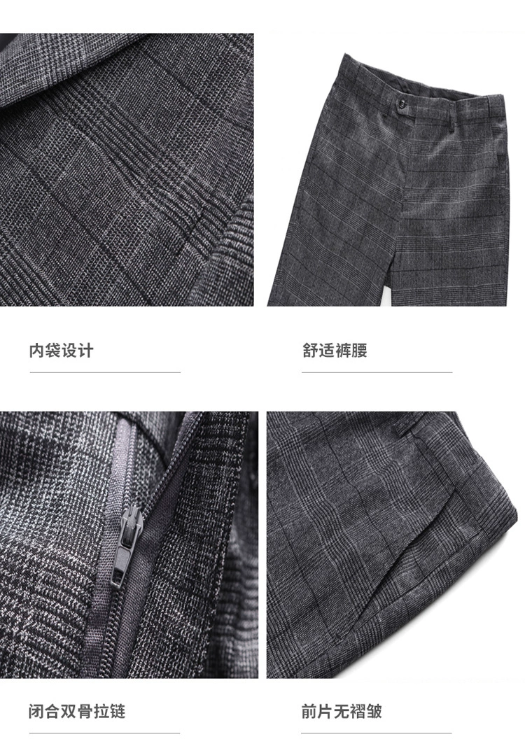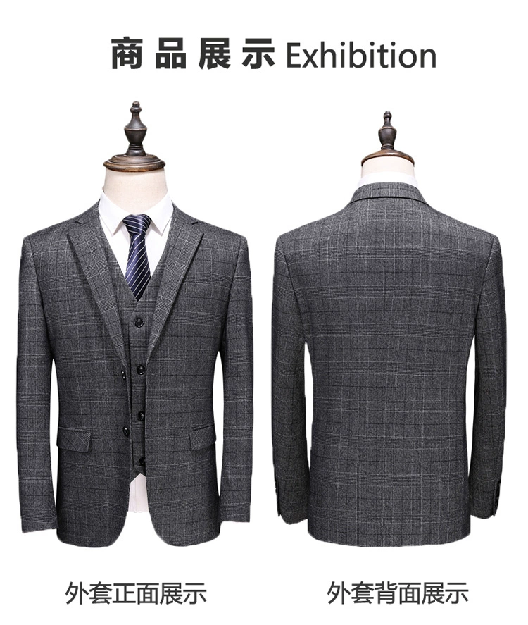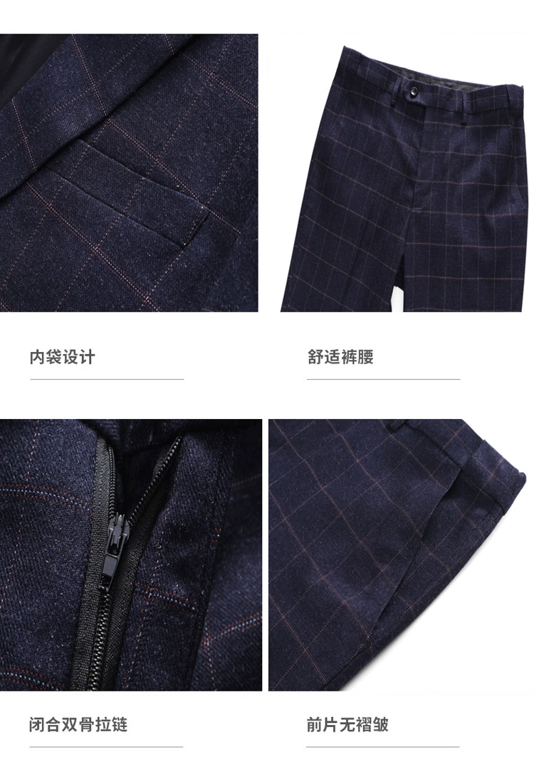 (Куртка + жилет + брюки) мужской деловой повседневный костюм в клет...