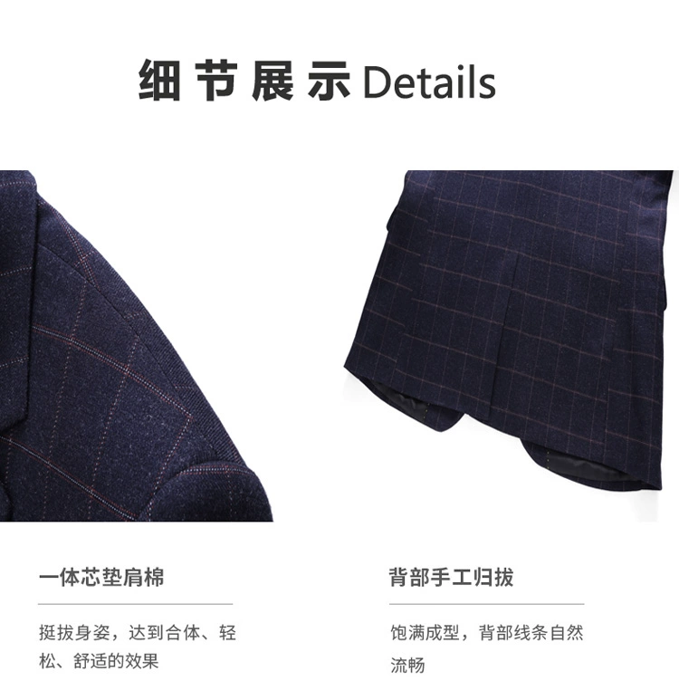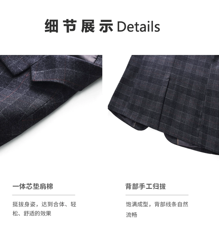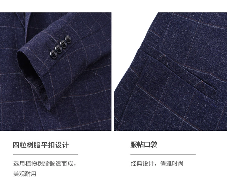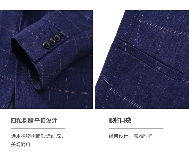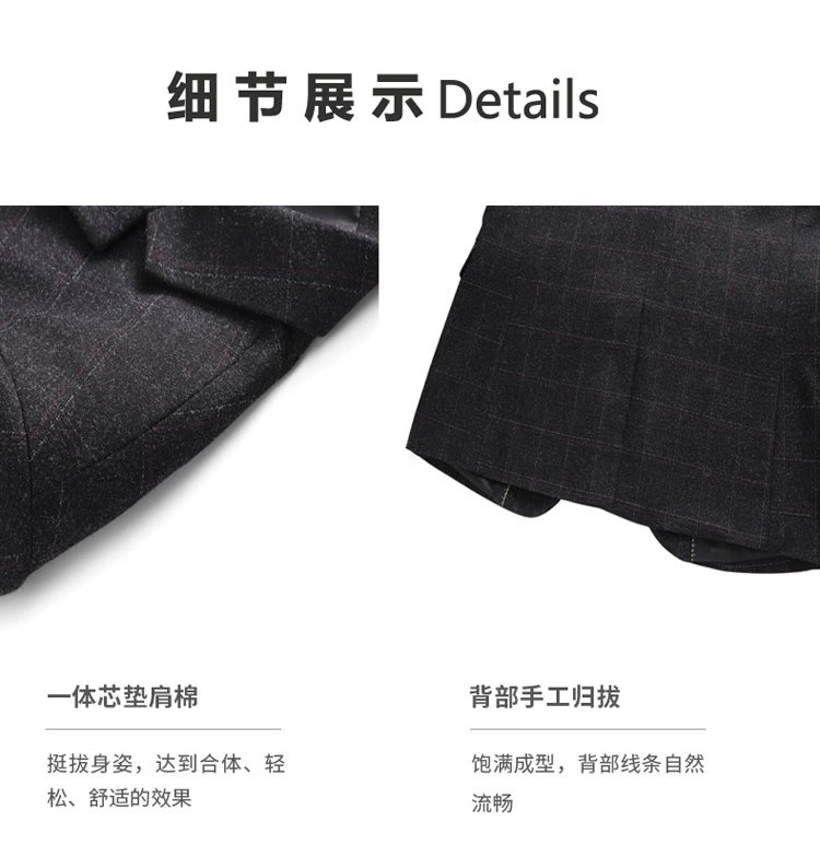 Размеры S-4XL (пиджак + жилет + штаны), Размеры: Мужские двубортный костюм большого размера модная клетчатая жениха свадебное платье костюммужская повседневная деловой костюм