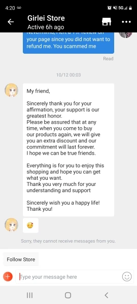 Товар никогда не прибыл на мой адрес. Продавец настаивал, что товар был доставлен, поэтому мой спор был закрыт, и я остался без товара и возврата денег, очень недоволен.