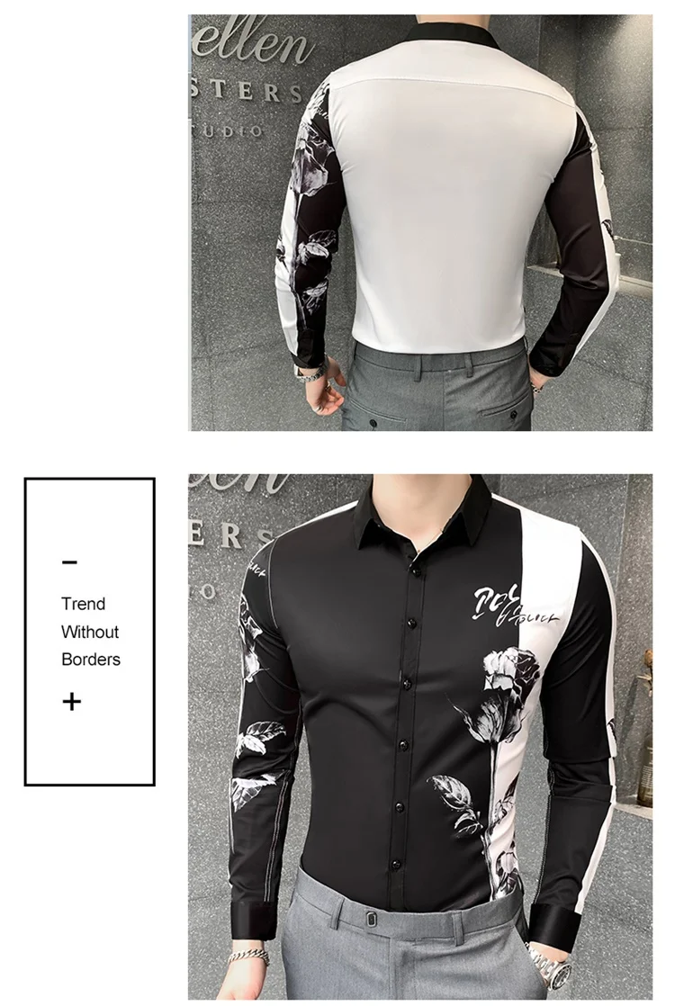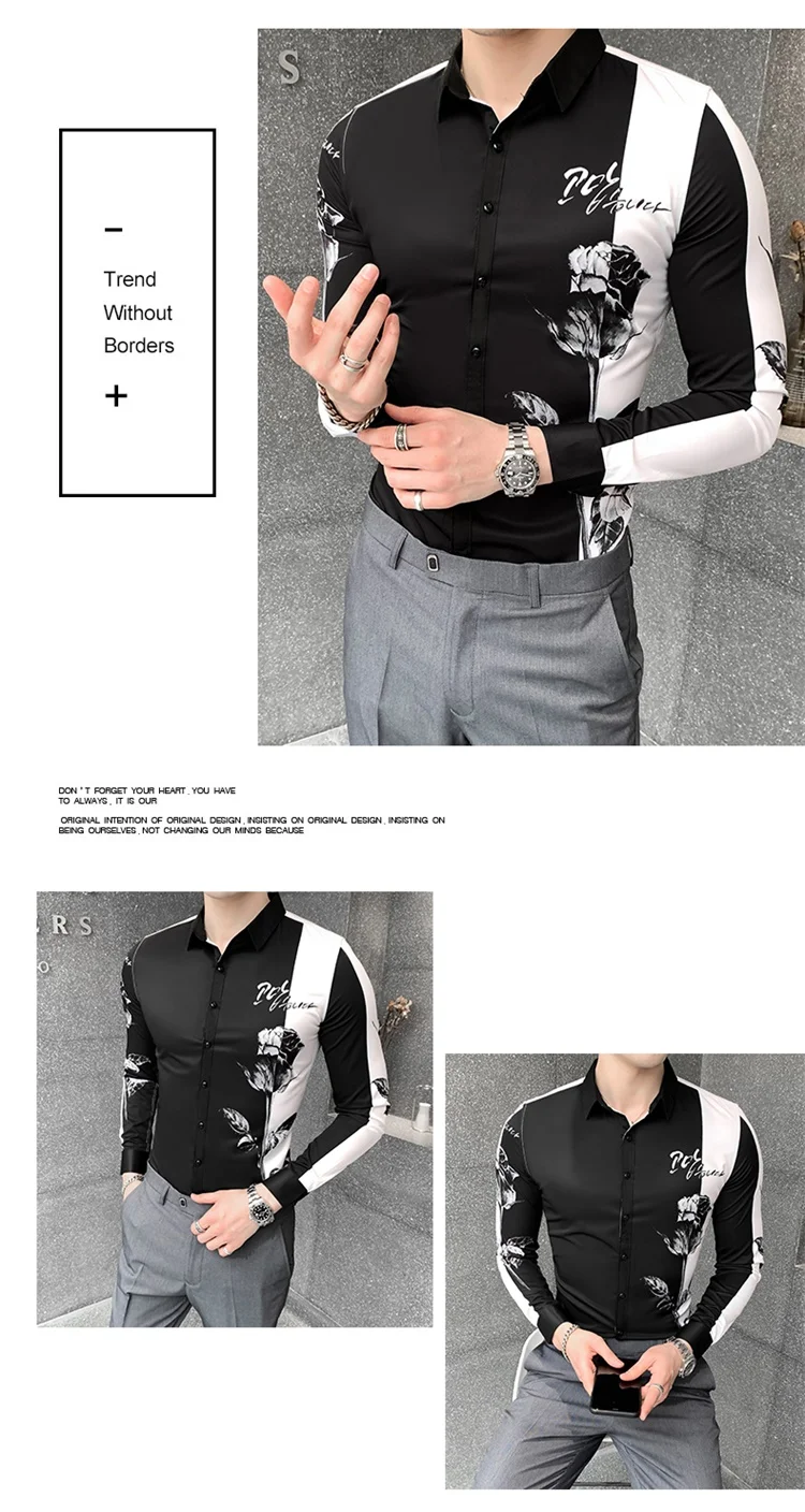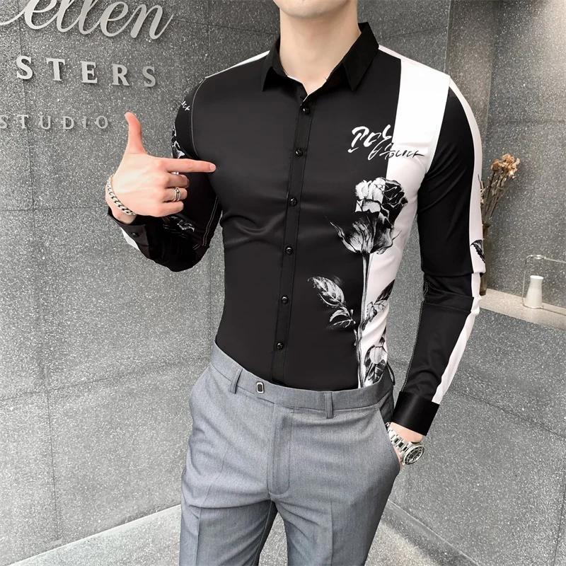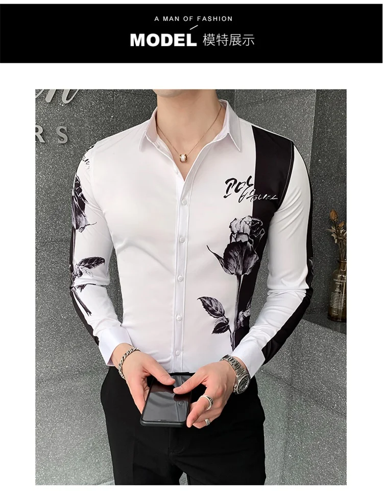 Мужская рубашка с длинным рукавом, с цифровым принтом