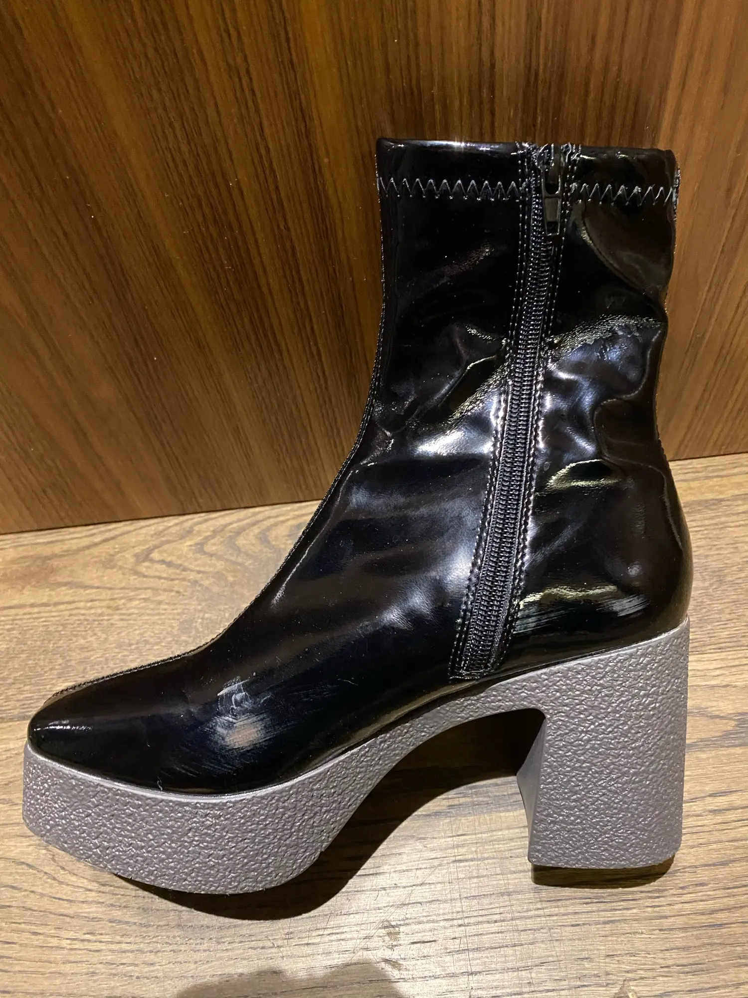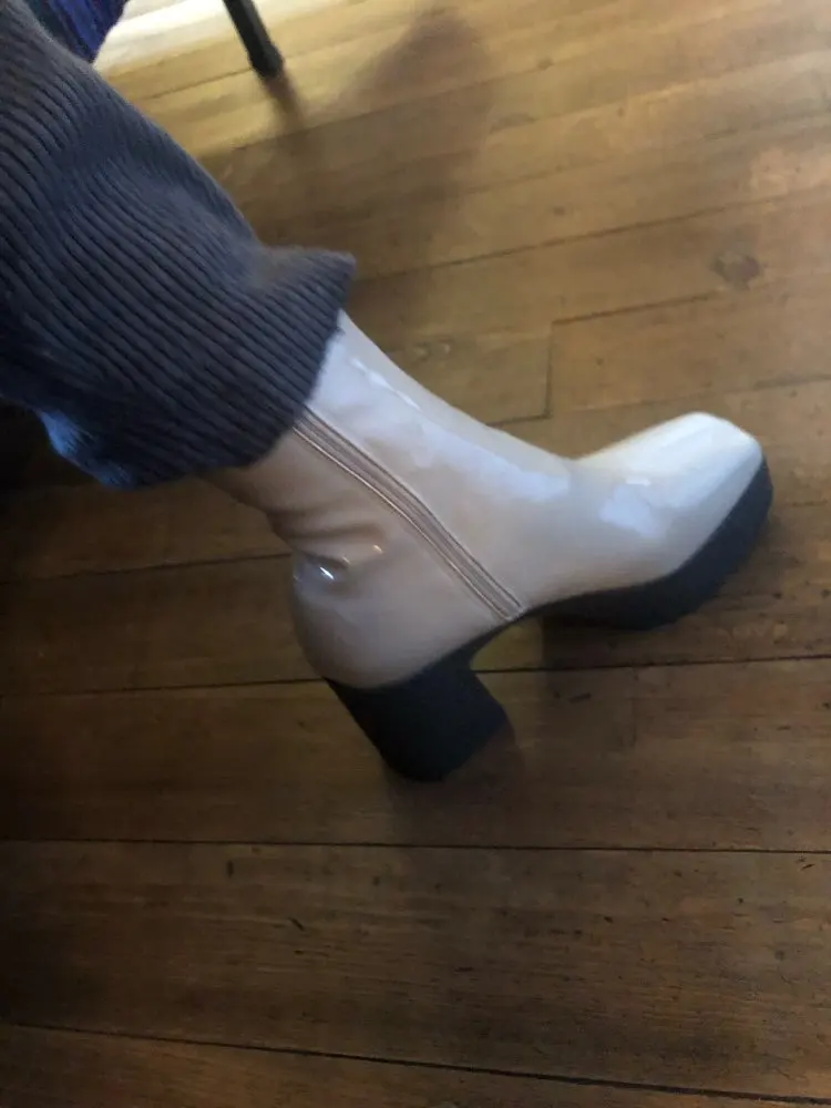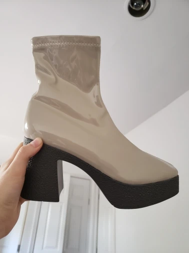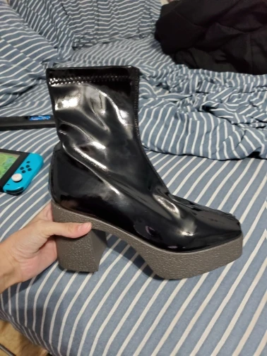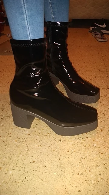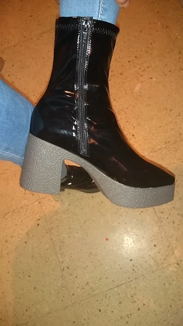 Измерительные ботинки -Высота каблука: 9 см -Высота платформы спереди: 3,5 см -Длинный хвостовик (измеряется от самой высокой части задней пятки): 16 см -Контур лодыжки (в самой высокой части): 26 см Как на фото и быстрая доставка: менее 15 дней. Хотя если у вас широкая Лодыжка, она немного тугая. Моя Лодыжка наверху, где концы ботинок измеряют контур в 26 см и загружают молнию, но плотно. Размер n согласно таблице. (Я заказал размер 37). Они полностью из пластика и потеют по ноге, но как вы ожидали.