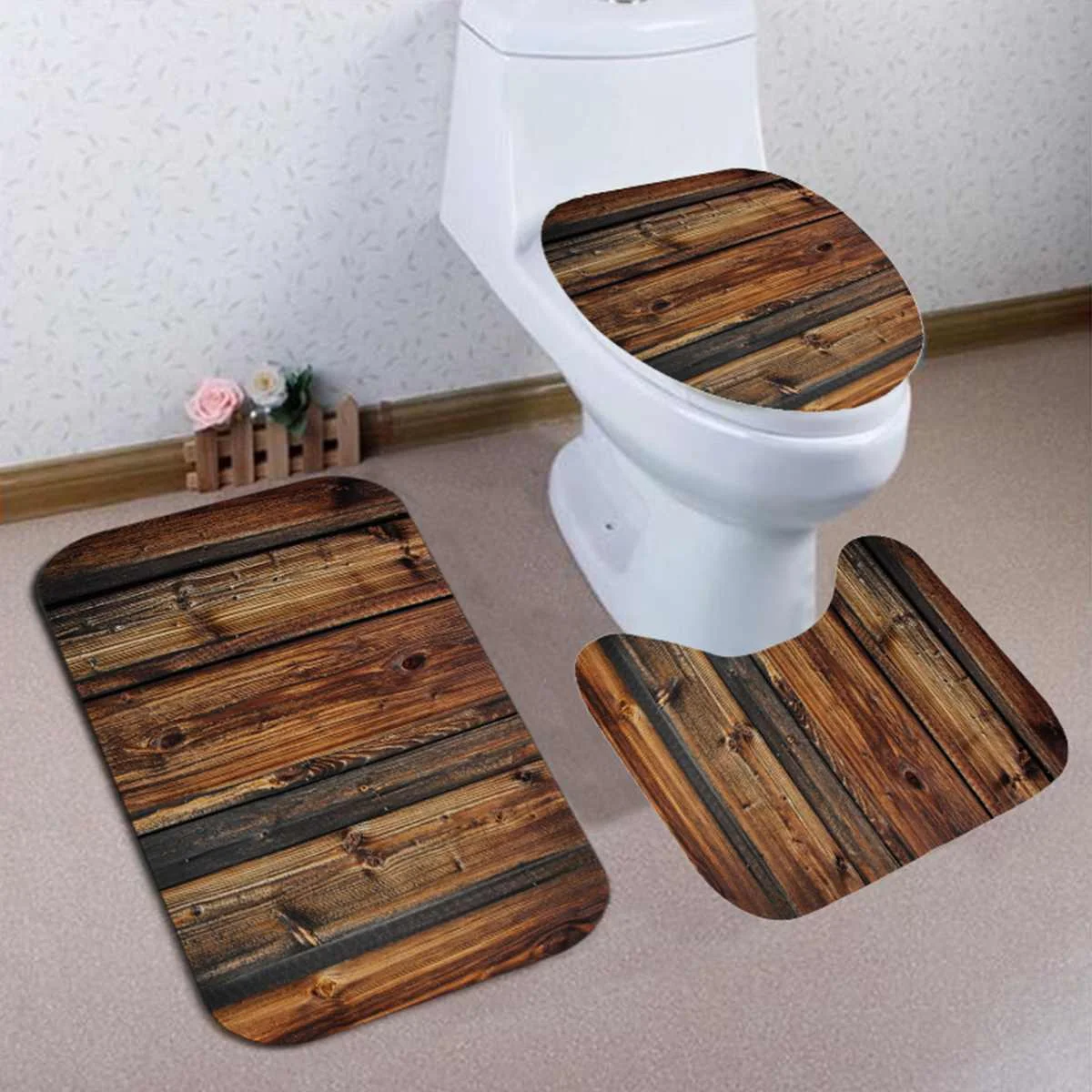 Занавеска для душа в стиле ретро, деревянная дверь, набор ковриков для ванной, водонепроницаемая ткань, занавеска для ванной, коврик, крышка для унитаза, домашний декор