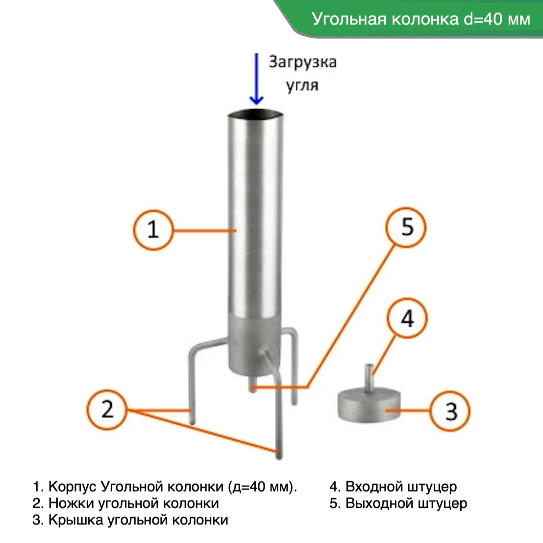 Угольная колонка- незаменимое устройство при домашнем самогоноварении, выполняющая фильтрационную роль. Как известно, активированный уголь помогает убрать излишки сивушных масел из самогона, улучшая его вкус и делая напиток более мягким и благородным. Уголь активированный - это лучший абсорбент, его применение абсолютнобезвреднодля организма!