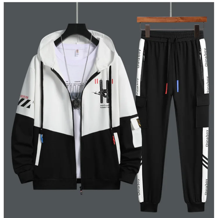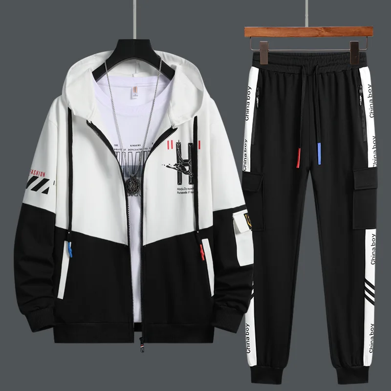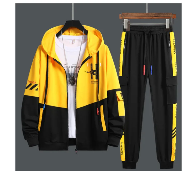 Мужской спортивный костюм из двух предметов, кофта с длинным рукавом и спортивные штаны, кофта с капюшоном и пальто, 2022