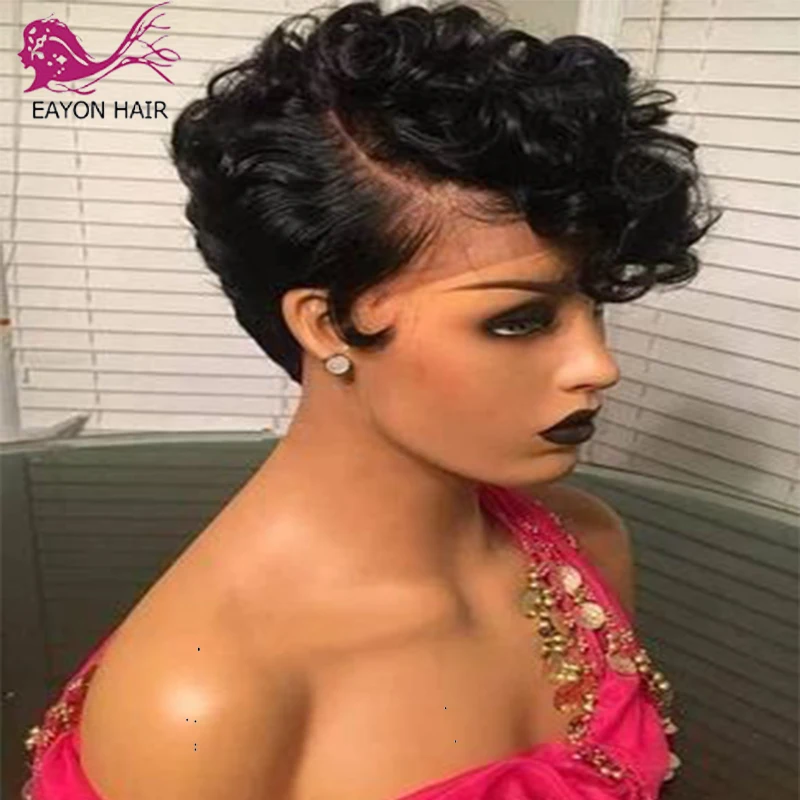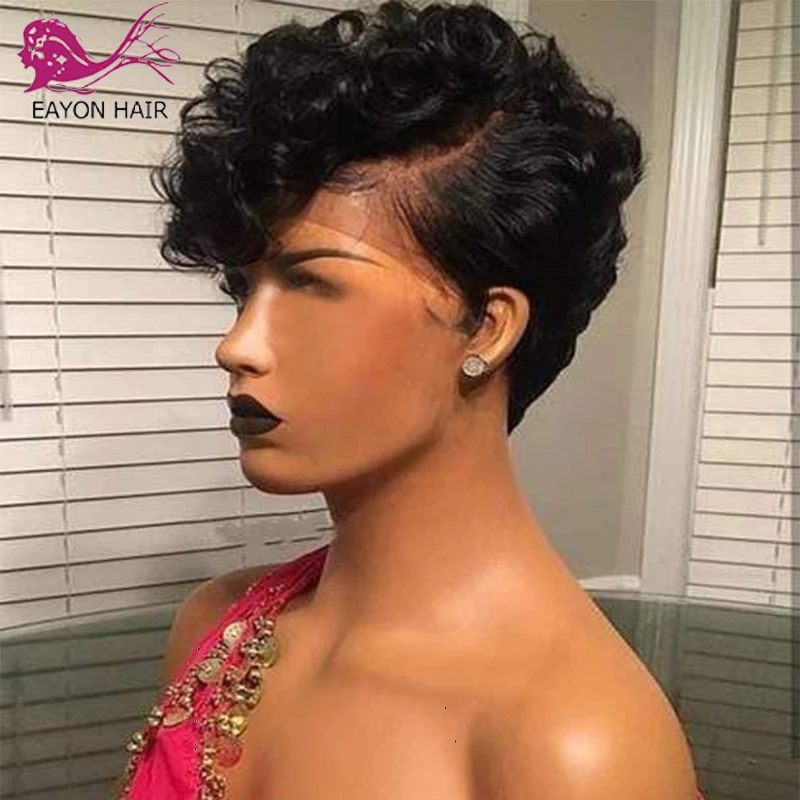 EAYON, короткая стрижка, Короткие парики из человеческих волос предварительно вырезанные 13x4 Синтетические волосы на кружеве парики из натуральных волос бразильский человеческих волос, короткая стрижка, парики для Для женщин