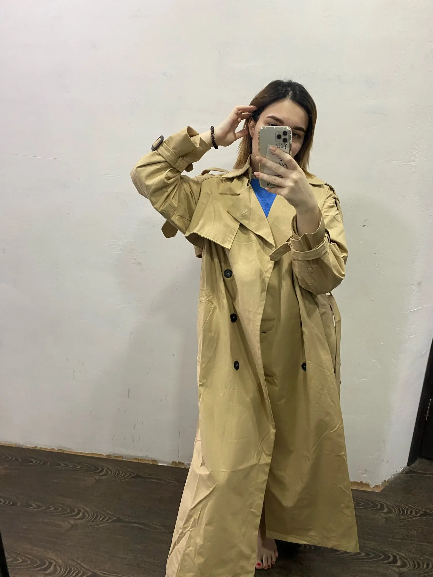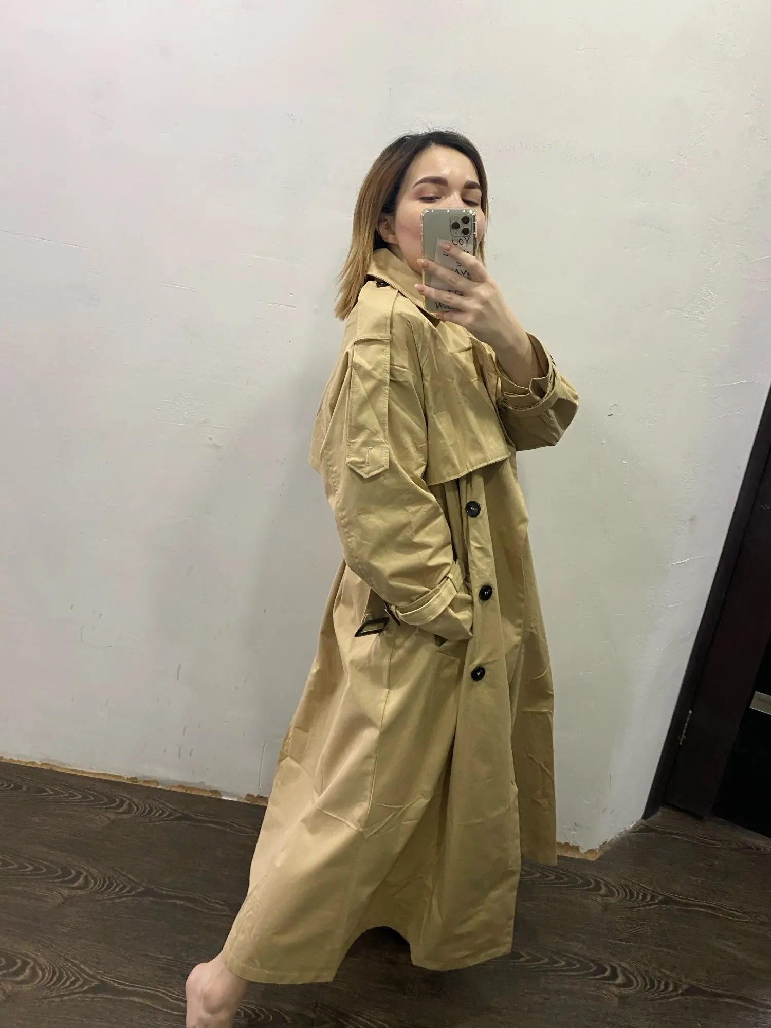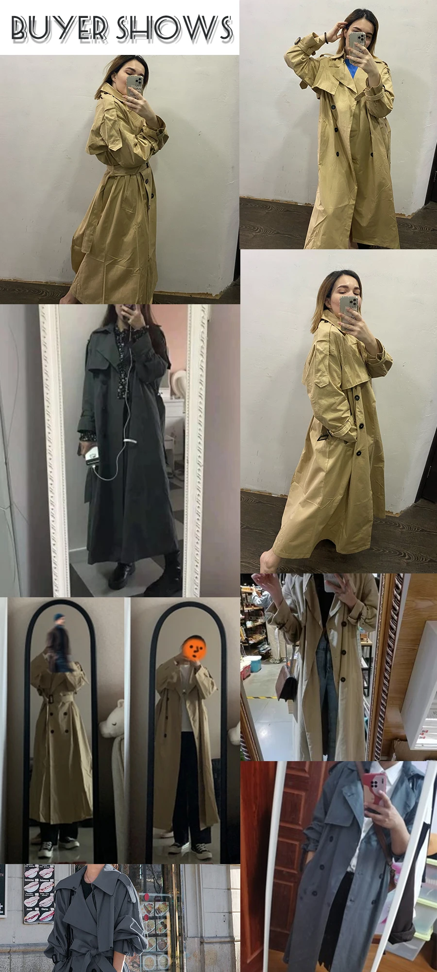 первый раз решилась купить одежду на Али. Плащ отличного качества, ткань типа плотного толстого хлопка, швы ровные. С момента оплаты и до получения вещи прошло три недели, сама доставка заняла 1 неделю, получила посылку в Сберлогистике в ближайшем отделении Сбера). Плащом довольна, на мой обхват груди 110 взяла размер L и не прогадала - не слишком объемно и не в обтяг. На мой рост 164 - длина рукавов и плаща оптимальная. Единственное, что смутило - сзади разрез чуть ли не до талии), буду зашивать. хотя в отзывах у других продавцов писали, что разрез стали делать меньше. мне значит, не повезло)