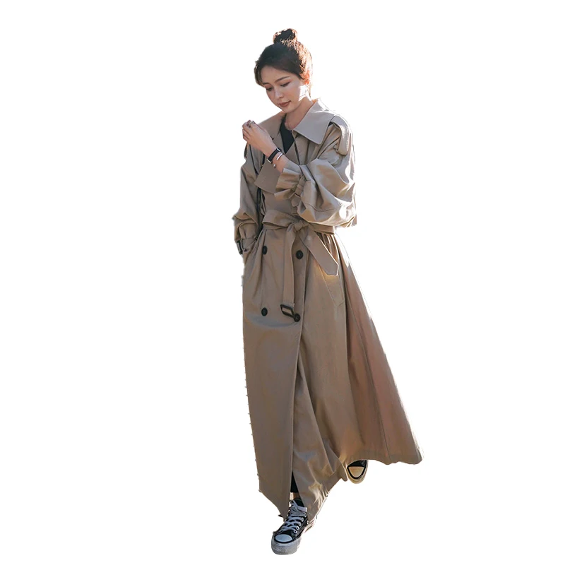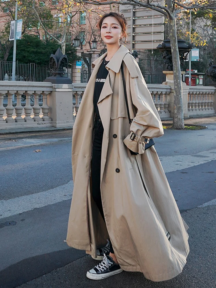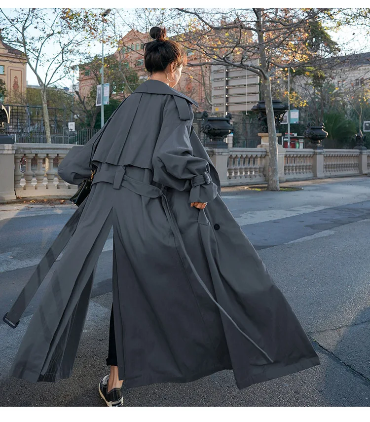 Плащ женский двубортный свободного кроя, с поясом, весна-осень