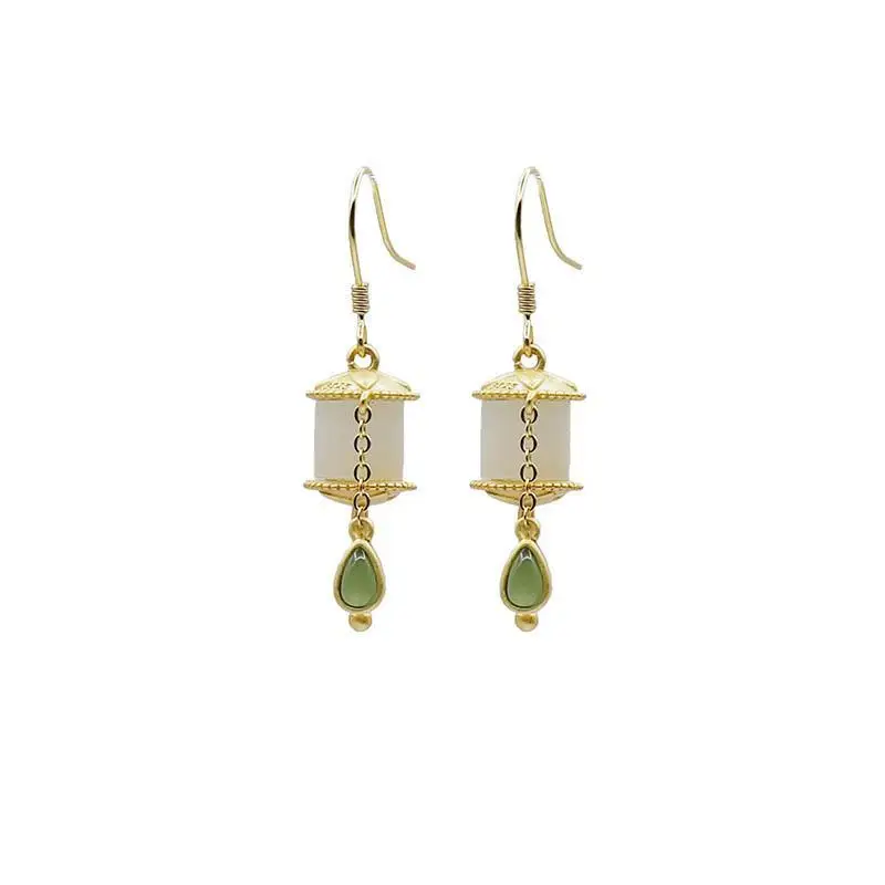 Новые позолоченные серьги из натурального белого халцедона с серебряной вставкой, Элегантные Очаровательные женские брендовые ювелирные украшения в китайском ретро-стиле