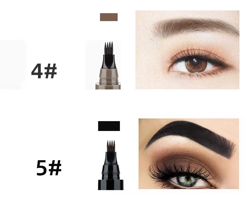 Жидкий карандаш для бровей, 2 шт., Водостойкий карандаш для бровей с четырьмя крапанами, тинт для бровей, макияж, четыре цвета, карандаш для бровей, коричневый, черный
