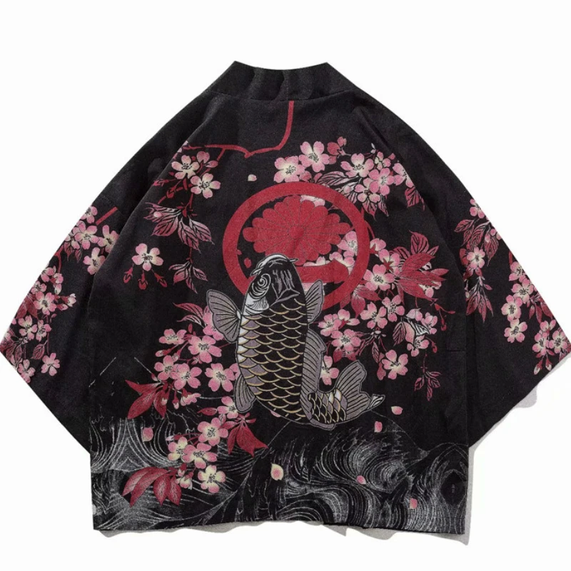 Куртка-кимоно Мужская, в японском стиле Харадзюку, с принтом рыбы к...