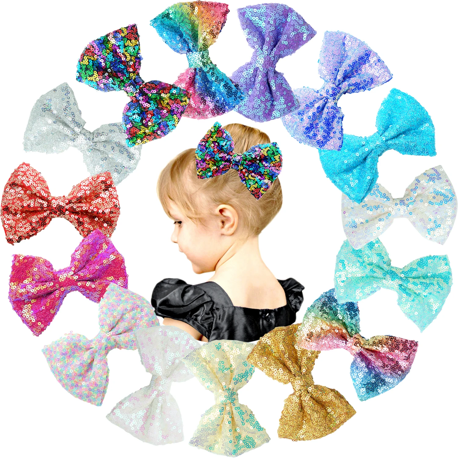 15 цветов 4,5 дюйма вечерние фестиваль Bling Sparke Блестки для волос луки зажимы типа «крокодил» для маленьких девочек
