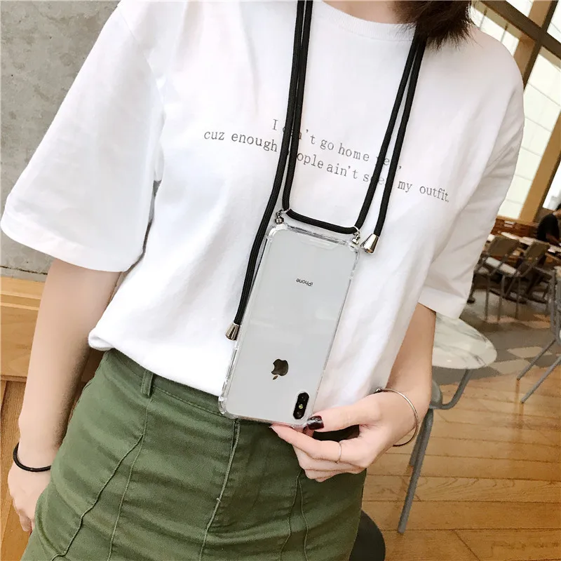 Прозрачный ТПУ бампер с ремешком и ожерельем, защитный чехол для те...