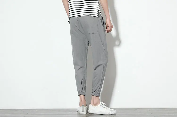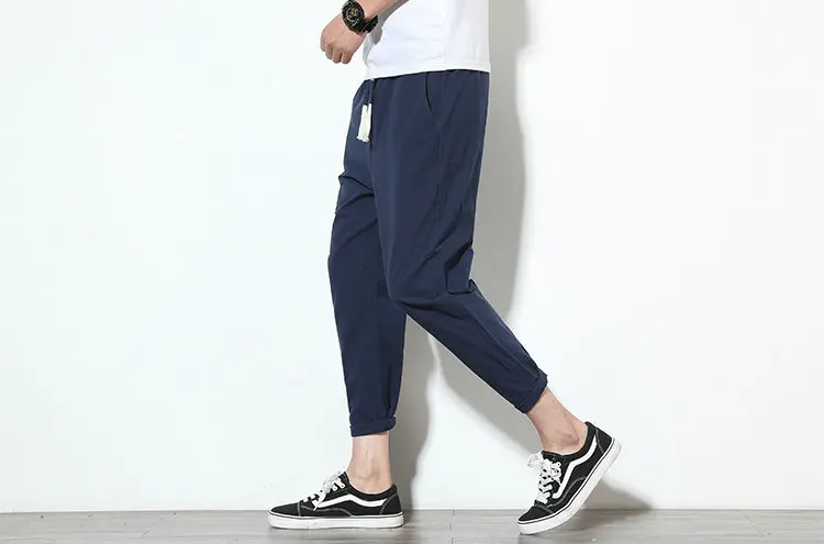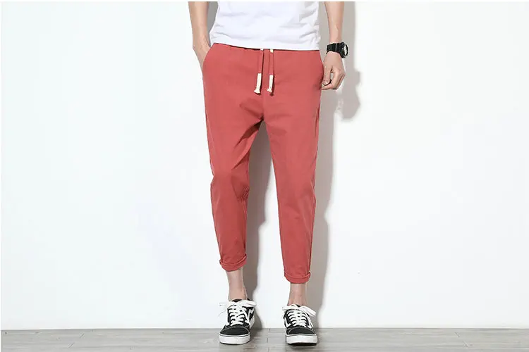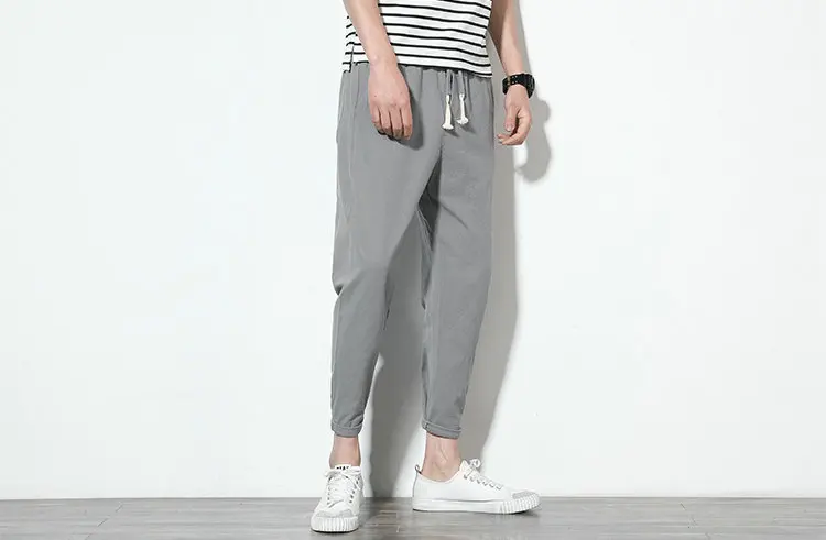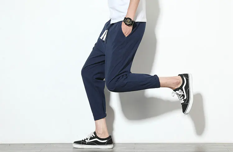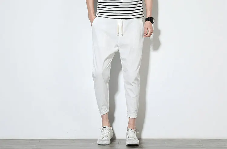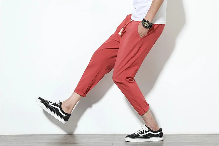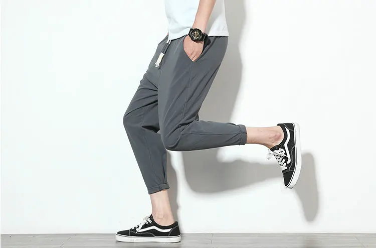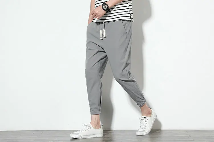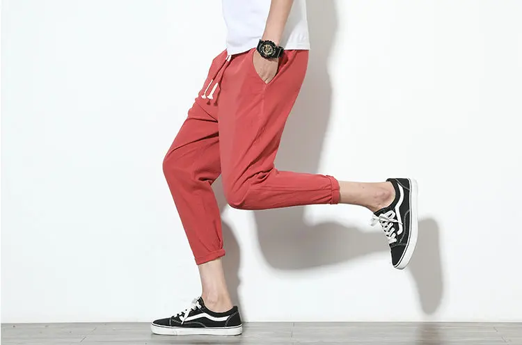 Джоггеры мужские хлопковые, однотонные брюки-султанки, повседневные брюки до щиколотки для фитнеса, уличная одежда, облегающие штаны, лето 2022