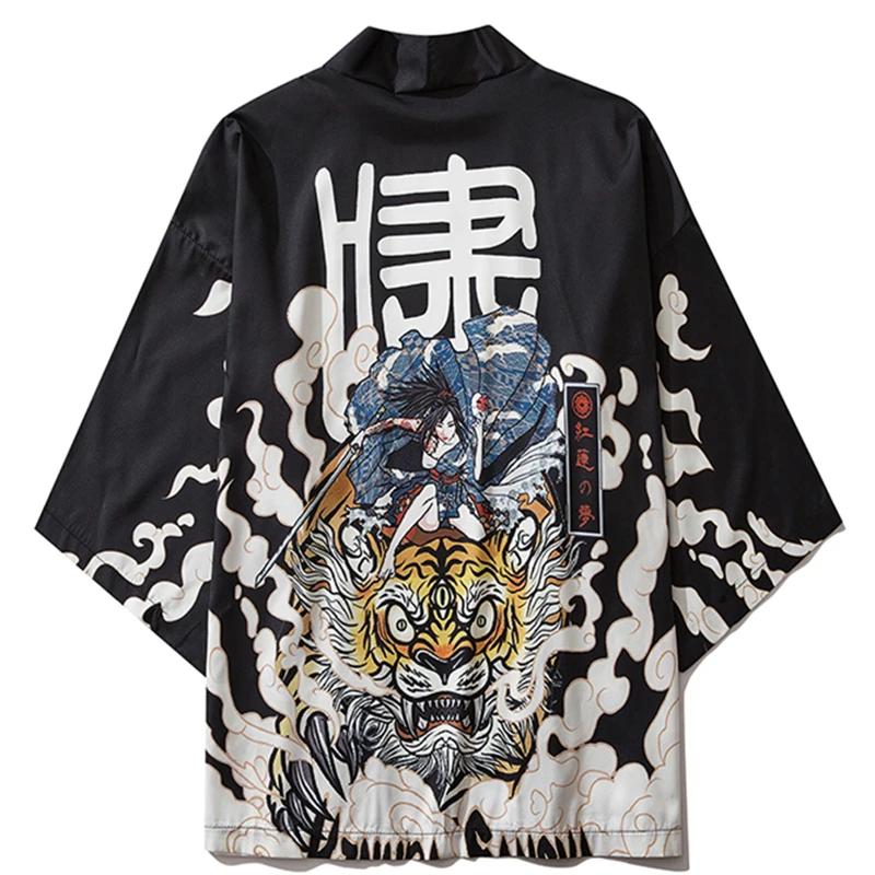 Кардиган-кимоно хаори в японском стиле, модная рубашка для косплея в стиле Харадзюку, костюм самурая кардиган с тигром, одежда для лета