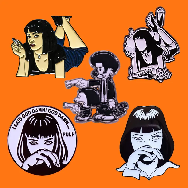 Эмалированные значки Mia Wallace Pulp дно-фантастические, забавные девушки в стиле панк, Металлические Бриллианты для шляпы, сумки, воротника, отворота, значки для мужчин и женщин, модные украшения