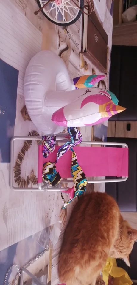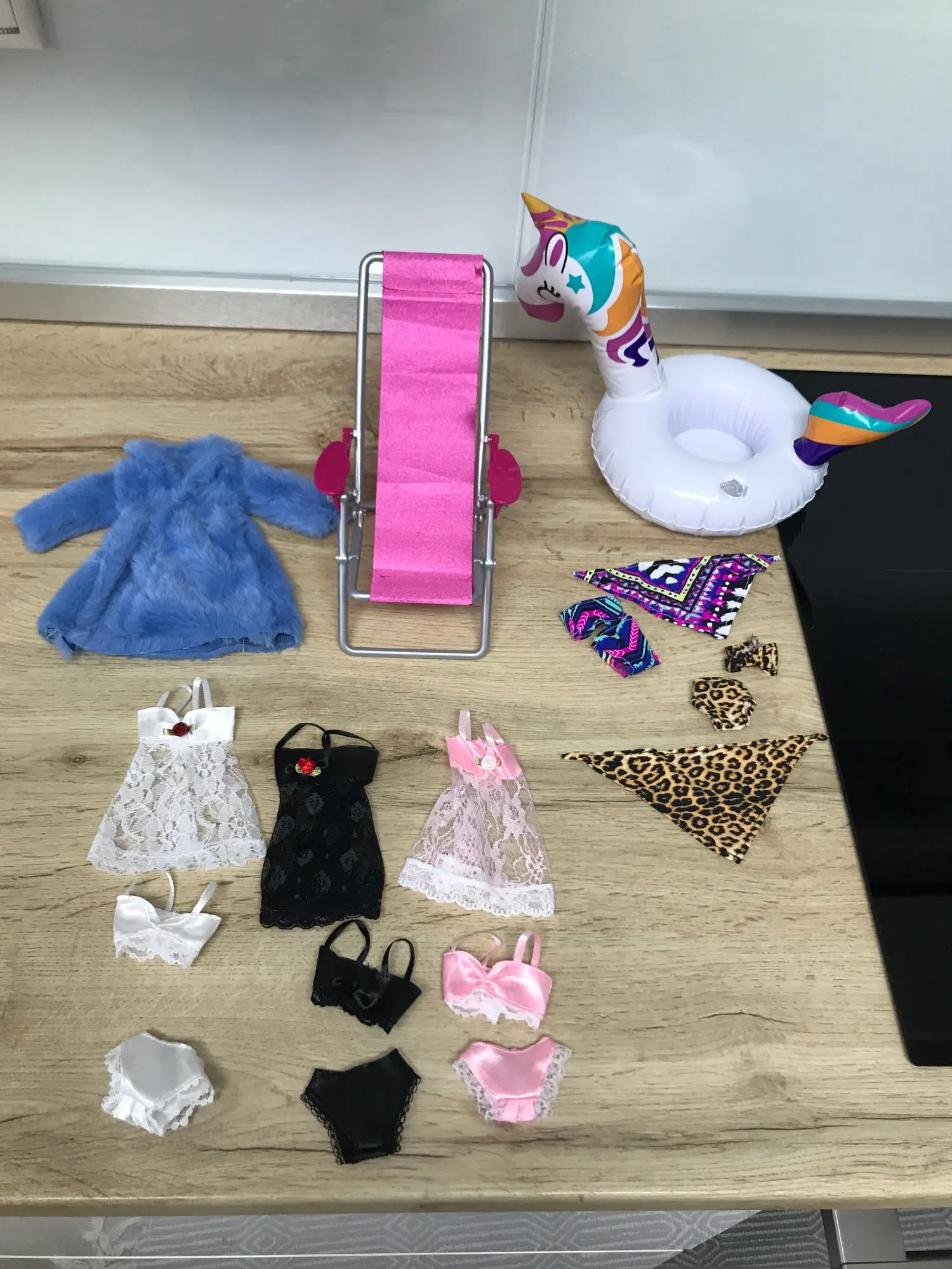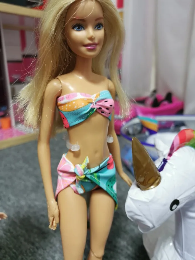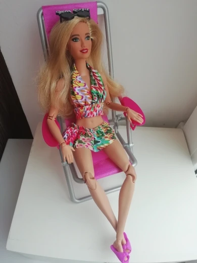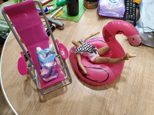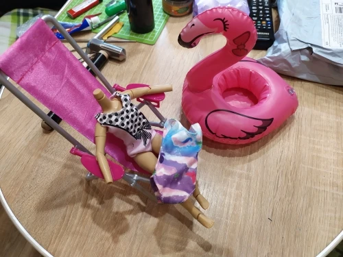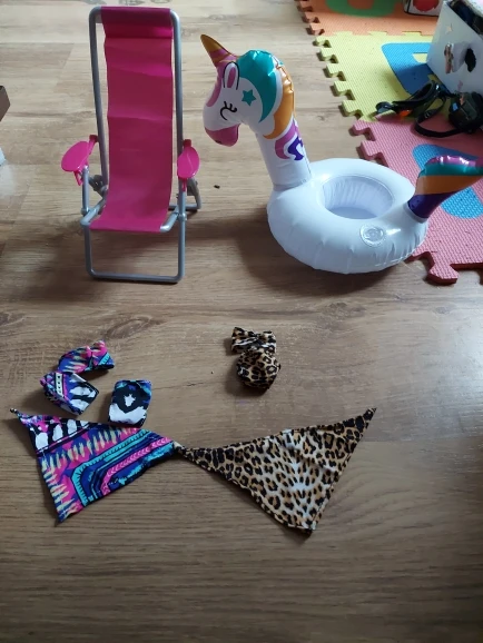 Потрясающе! Бикини идеально подходит для Барби, а стул-это точный размер для Барби-очень нравится надувной слишком-отличный комплект и хорошая быстрая доставка. Отличный продавец.