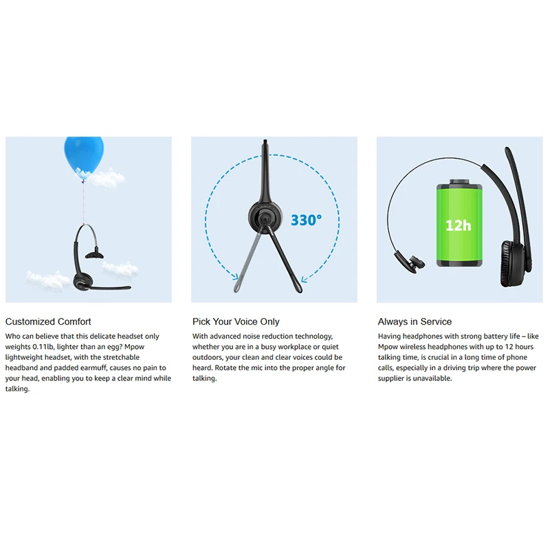 Офисная беспроводная гарнитура Mpow 2 шт., Новая Bluetooth-гарнитур...