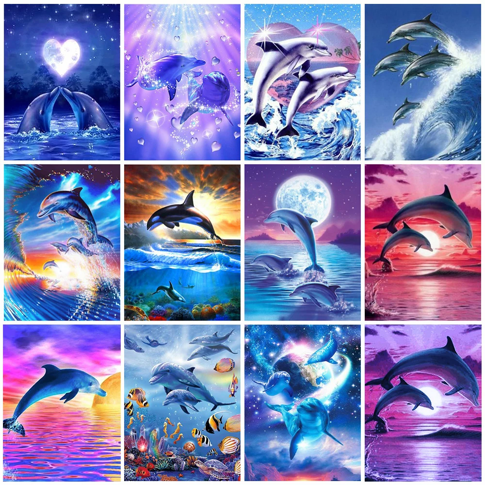 Алмазная 5D живопись, мозаика с животными, дельфин, полная вышивка, квадратные круглые алмазы, вышивка крестиком, украшение для художественное ремесло, подарок