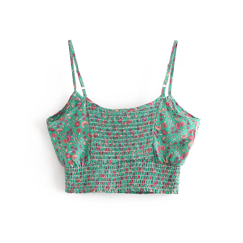 Женский винтажный комплект из двух предметов, Зеленый цветочный топ...