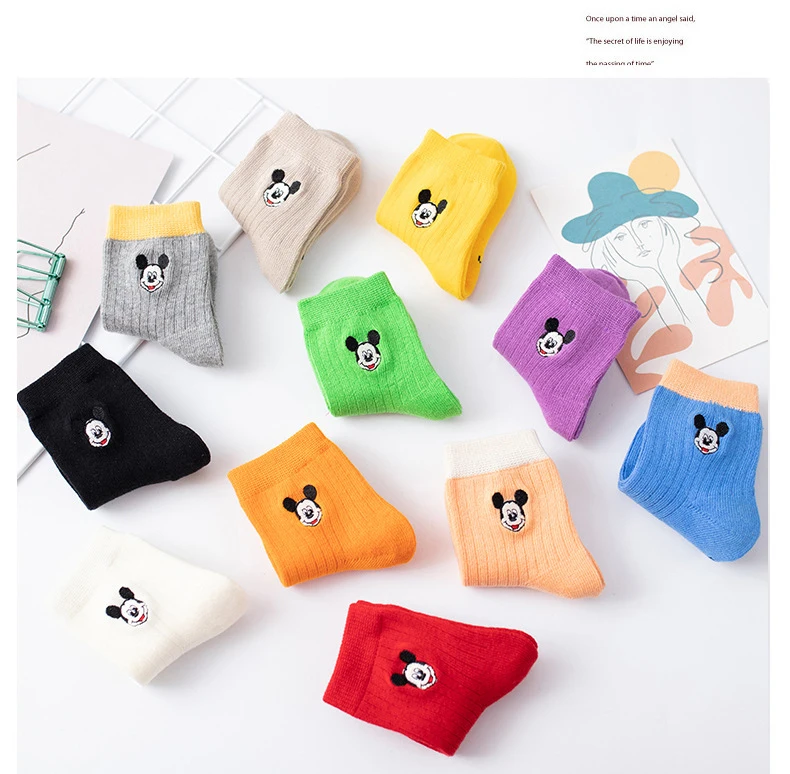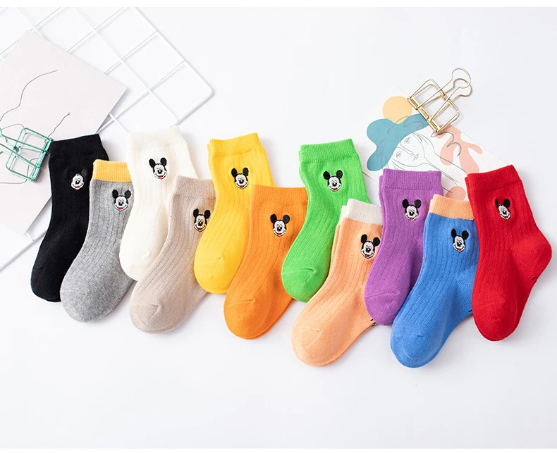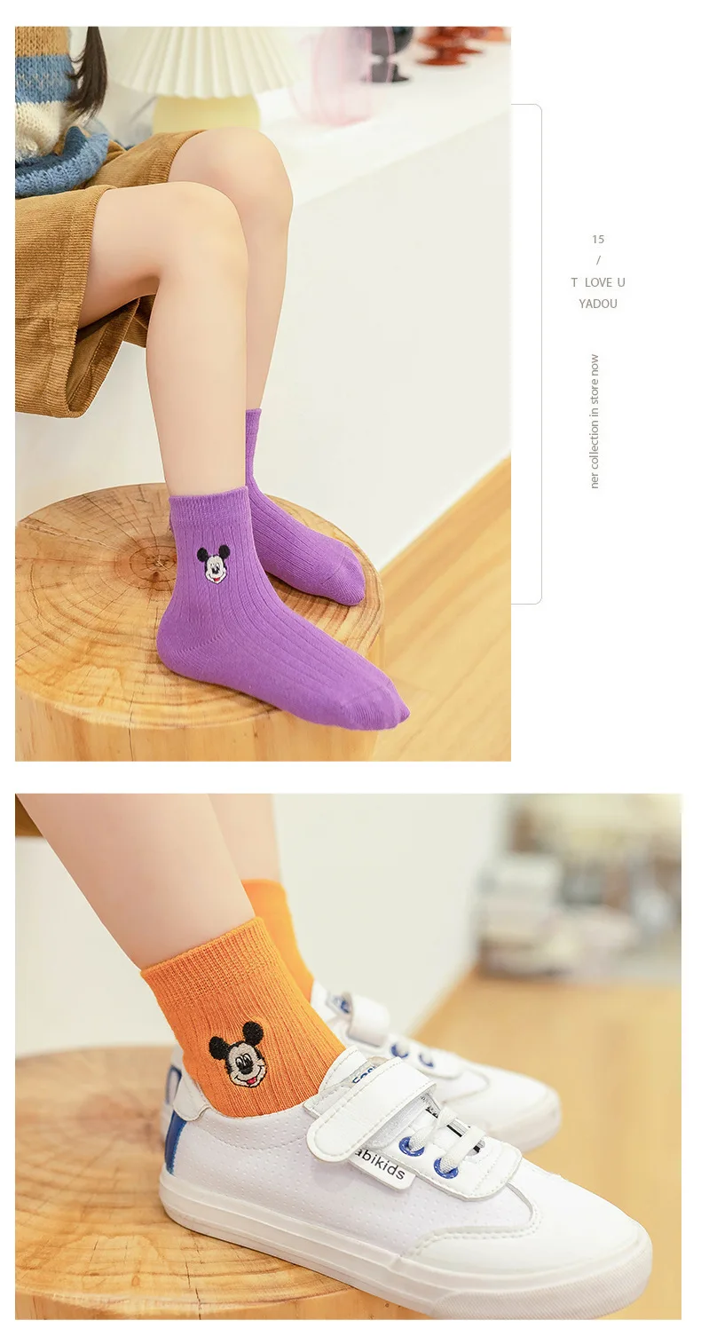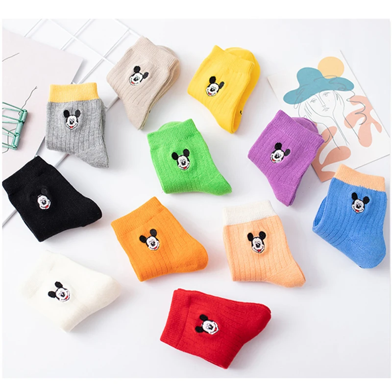 Детские хлопковые носки с вышивкой Микки, на возраст 0-7 лет