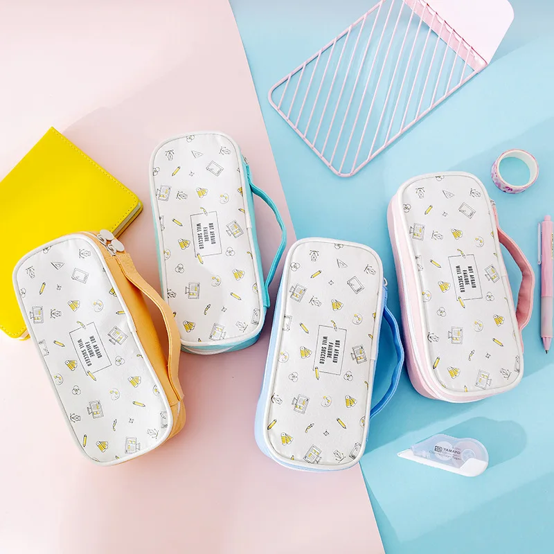 Вместительная сумка для карандашей, искусственная кожа, корейский тканевый чехол, милые канцелярские принадлежности, технические чехлы