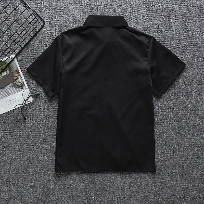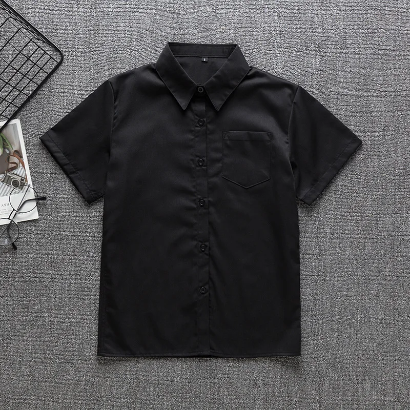 Базовая черная блузка с короткими рукавами для девочек, школьное платье средней форма для старшей школы, униформа Jk, топ, большие размеры, XS-5XL