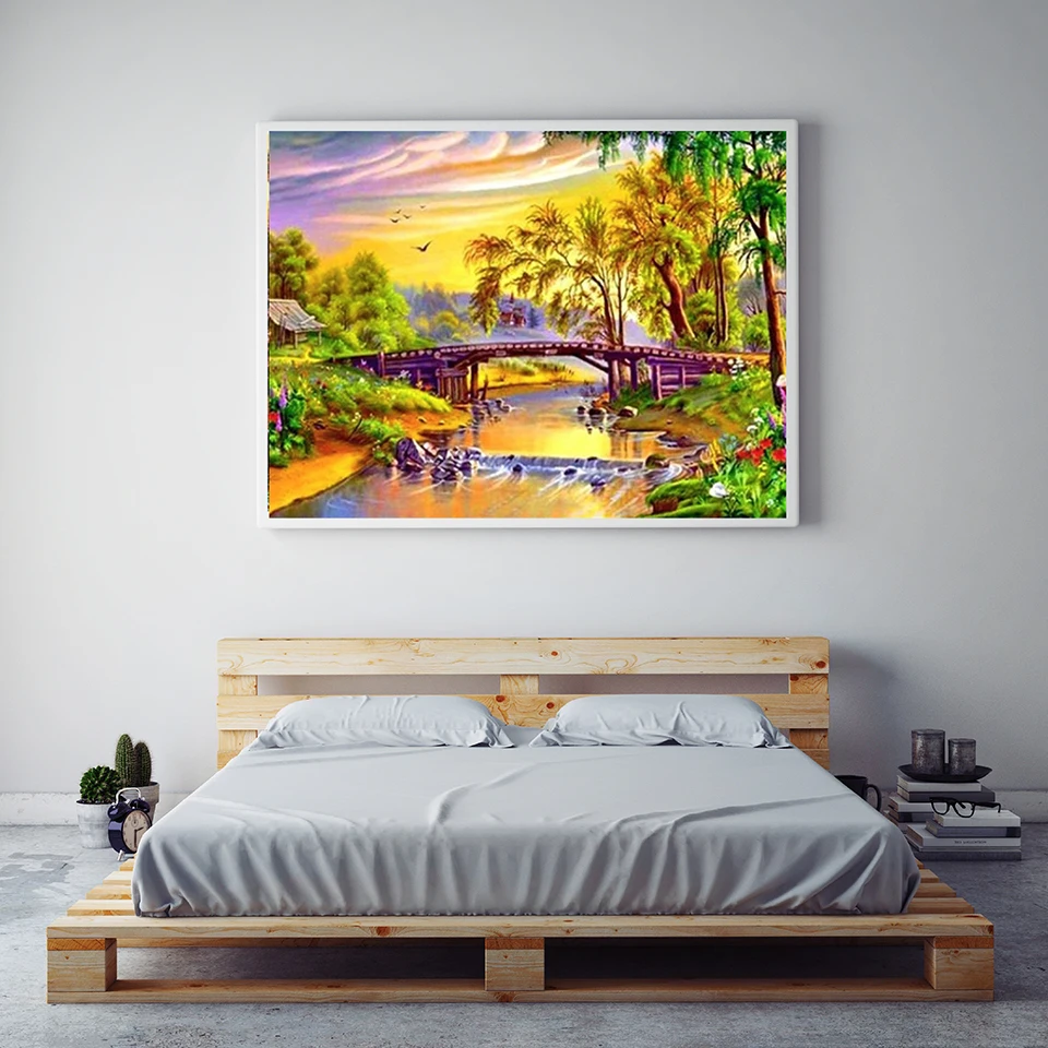 Алмазная живопись 5D "сделай сам", пейзаж, дом, пейзаж, стразы, изо...