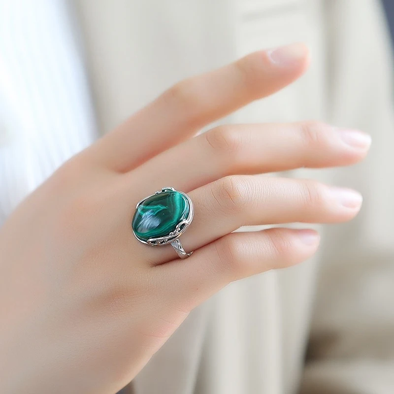 Кольцо из Малахита с натуральным камнем для мужчин и женщин, кольцо с красивым простым кристаллом, элегантный подарок, бижутерия