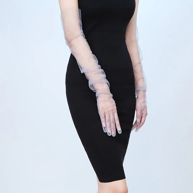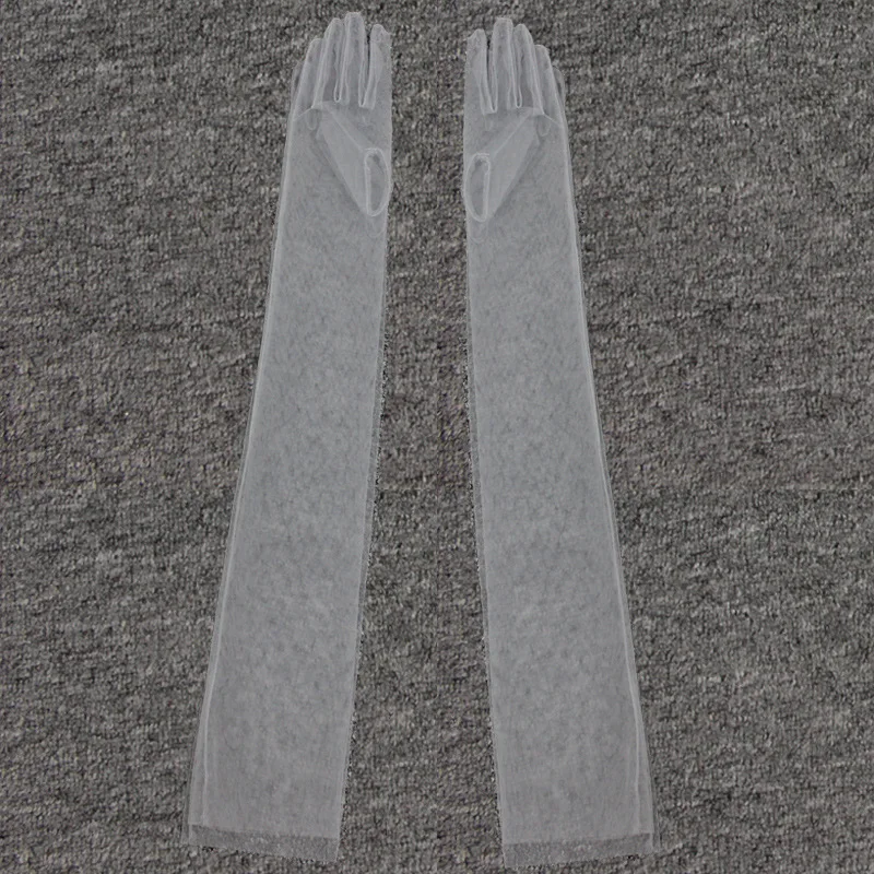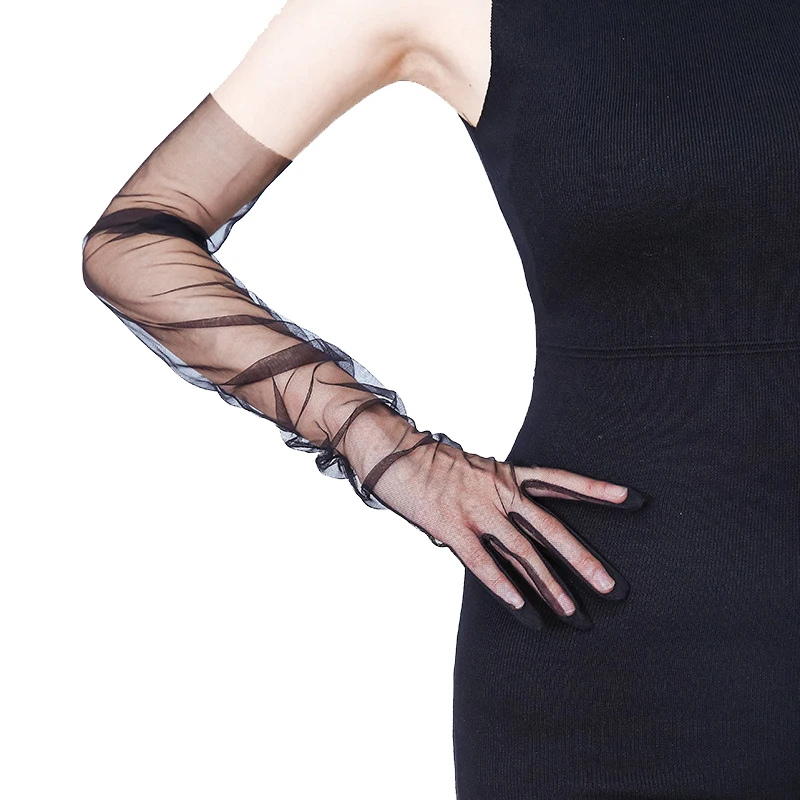 Перчатки женские ультратонкие из тюля, 70 см, прозрачные, для защит...