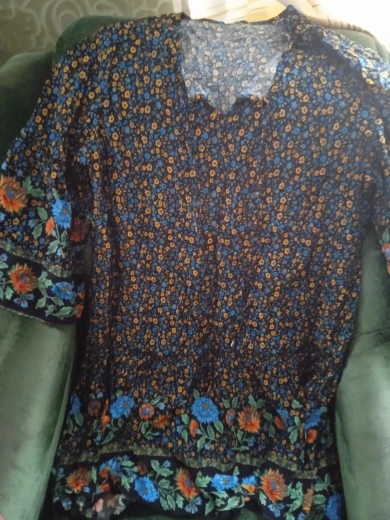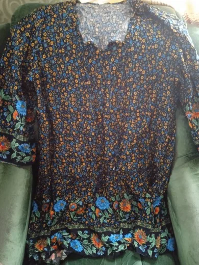 Винтажная шикарная женская зеленая богемная блузка с цветочным прин...