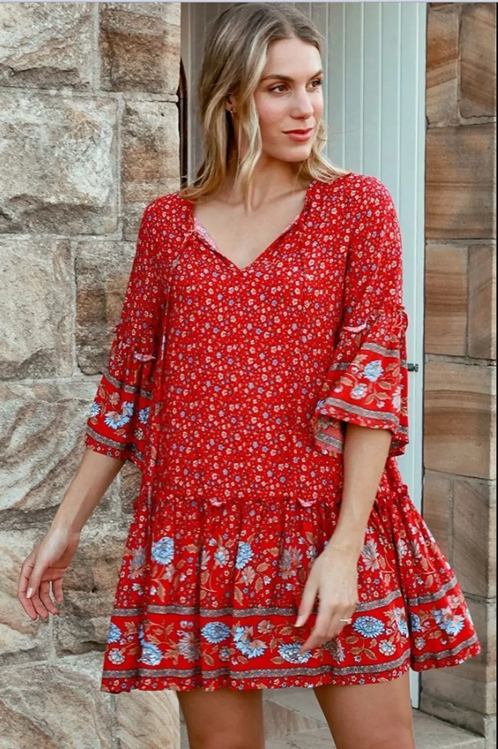 Женское богемное пляжное мини-платье Happie Queens, с цветочным при...