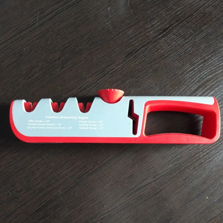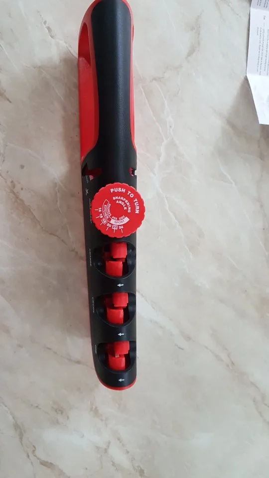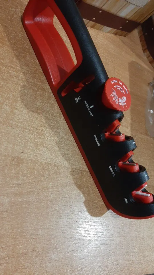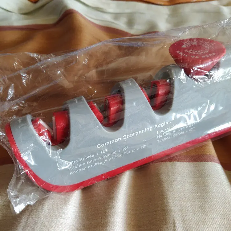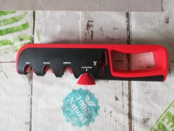 Товар пришел довольно быстро, где-то через 2 недели. Нож был хорошим, все ножи, которые у меня были заточены. Три степени заточки: для ножей для бега грубая, средняя с керамической заточкой компонент для заточки нормальных ножей и третья для подводки для глаз лопастей. После использования, вы можете удалить насадку с заточенными лезвиями и промыть из сколов металла. В общем, я был доволен товарами, я рекомендую купить!