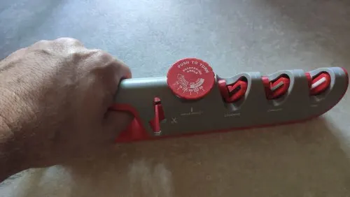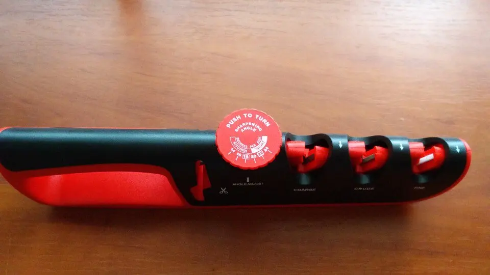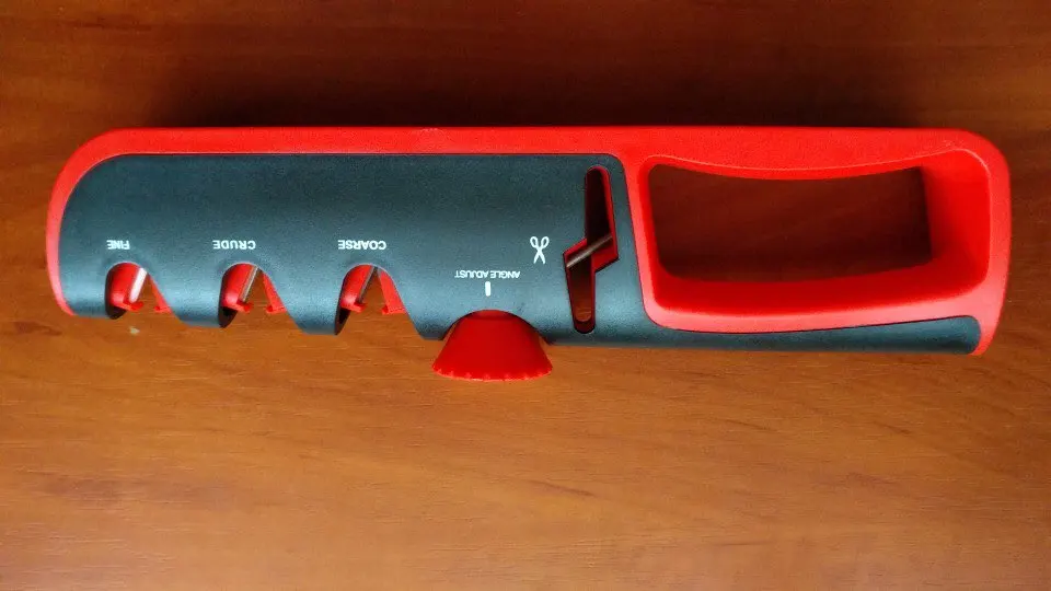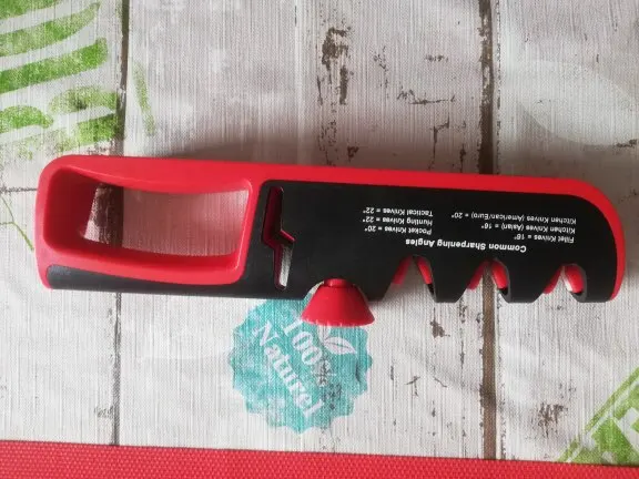 Хорошая точилка, мне понравилось. Ножи затачиваются, вопрос продлится долго. Простой в обращении, один дорогой нож, который я не затачиваю, чистится для недорогой кухни.