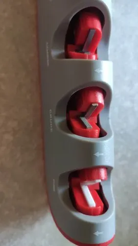 Соответствует описанию, ножи точят идеально! Ножницы еще не были опробованы, но они, вероятно, тоже будут. Определенно рекомендую товар и продавцу. Доставка на следующий день после оплаты, быстрая доставка всего 2 недели. Удобно использовать! На столе не скользит. Все супер! 2.
