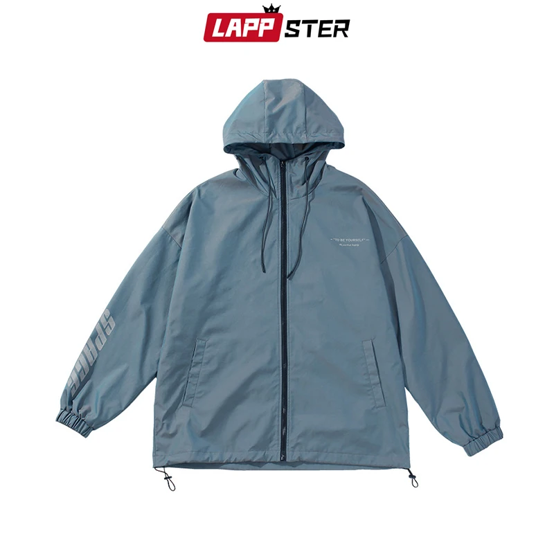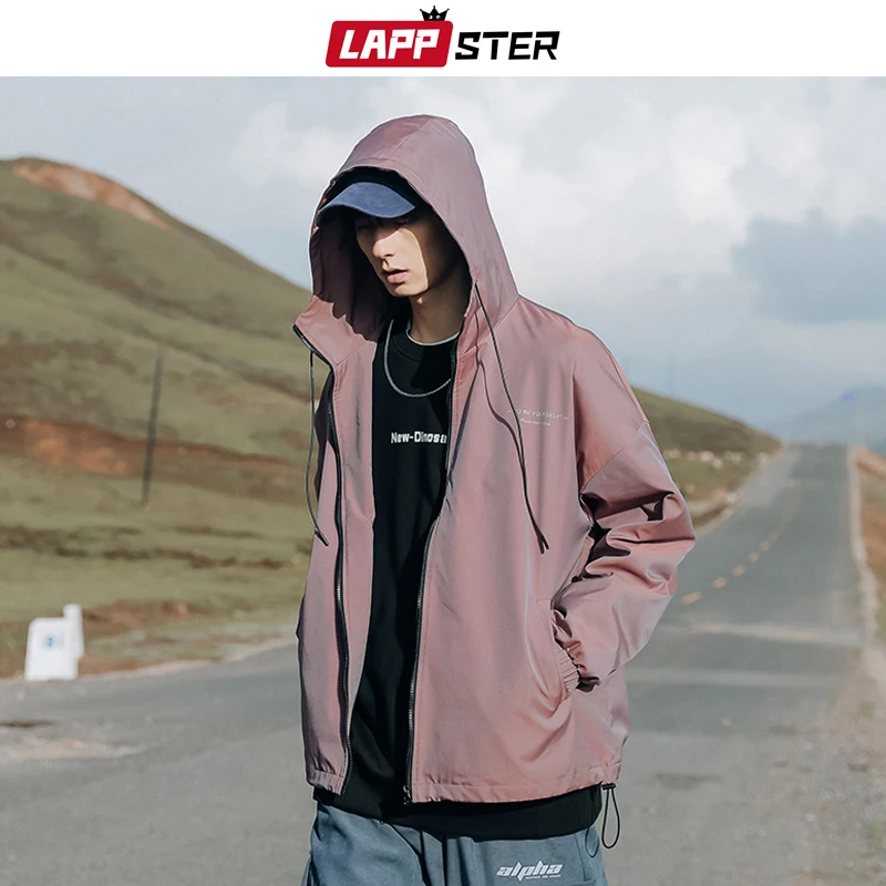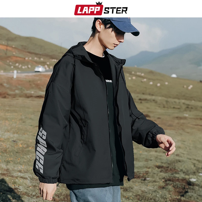 Ветровка LAPPSTER мужская с капюшоном, уличная одежда с надписью, куртка оверсайз в стиле хип-хоп, Корейская Черная куртка-бомбер, осень 2021